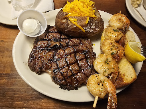We received our food in a normal amount of time and my Ribeye was very well cooked and everything fine (pretty fatty, but that's ok - tasted great). My wife's Filet, unfortunately, was cooked completely wrong (warm, red center, when she ordered Well Done...although she prefers Medium, she has to do Well Done right now). We showed our server, who agreed that it wasn't Well Done and said she would get it corrected and back in a bit. During the next 20 minutes, we asked her to check on it and she did and we also mentioned it to the manager when he came by, and he checked on it...but we ended up receiving it after I had eaten all if my steak and sides - around 1/2hr later. It was the same steak (with the same bite taken out of it), and by this time, it was pretty dry and flavorless, but it was now Well Done. They also forgot to bring her side of steak fries, so we received those another 5+ minutes later, after mentioning that to the manager and server, as well.
