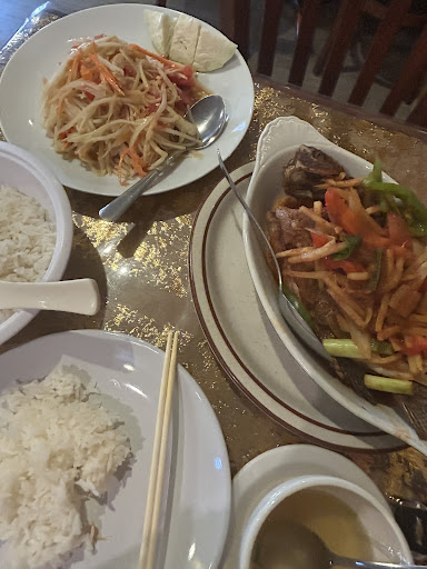 Sometimes for lunch sometimes for dinner. Great food. Great service. I've never been disappointed by their food. They'll actually make your food Thai hot unlike some other Thai places in town. Bottomless Thai iced tea. Yum. My favorite is the pad se ew beef. I like pad thai, waterfall beef, their soups, their teas, its all good. Everything that I've tried here is a winner. If only they moved to the north side. Edit: I stopped in with my family like I often do. We ordered, my food came I started eating it, then the waitress came and said that there was a mistake and brought me a new plate. I said that i hadn't noticed anything but ok. The cook poked his head out and was watching. She said to keep the original. She walked back and he looked a bit upset. I didn't think anything of it at the time. However, when we were leaving my stomach was aching a bit. We got home, I was going to put my leftovers in the fridge. I took a bite of the original plate again a d there was a few strands of hair. Gross. I puked and tossed the 1st plates leftovers. Later, my stomach was aching so bad that I had diarrhea and actually puked violently while doing so. I think that something was wrong with that first plate and they sent a substitute and the waitress was probably supposed to being rhe other back. Never again. Y'know, I have forgiven them for the time their restroom toilets weren't working and they said to throw toilet paper in the trash, which was ultra gross. But that should have been the last red flag. I cannot recommend this restaurant to anyone. I would avoid it. It hasn't been the same since the owner sold it anyway. You lost a longtime customer with that...