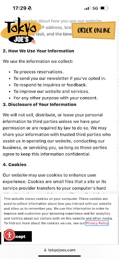 Ā Ā Ā Read moreFood is ok, but I have to wonder why, if I joined their ārewards programā, I have to agree to allow them to collect info like my ip address and, oddly, āwebsites Iāve visitedā? This is from their own website: