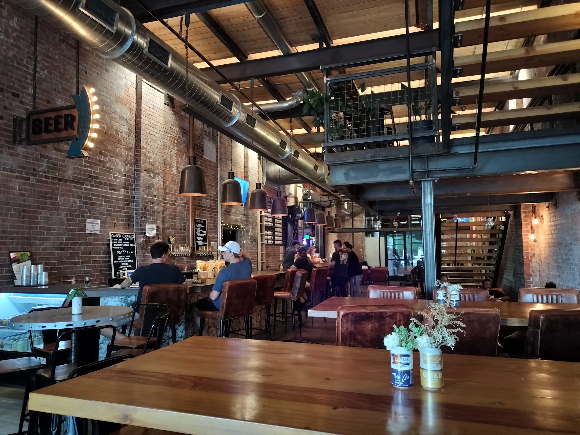 Read moreThis place would be nothing if it weren’t for the co-op. Let’s imagine the brewery alone. As it stands, with no support from neighboring food vendors. Decent beer, variety, several capable of satiating a spectrum of taste buds. Next the atmosphere: Couches, Cadillac chairs at the bar. A trivia DJ in the corner, with a solitary speaker using a paid program to deliver answers to relatively simple questions. The roof deck, covered in turf with just enough space for corn hole, but not enough to inspire patrons to play.