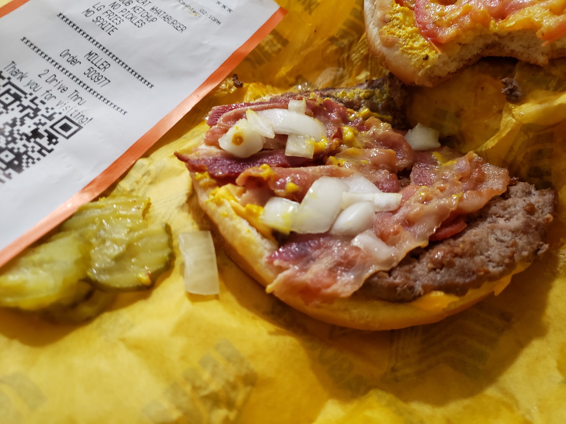 Read moreOk I tried SO hard to like this place. This is a review after my THIRD bad visit in a row here. First Visit: Had difficulty speaking into the ordering microphone...lady couldn't hear me and I wasn't sure where to speak to help. The order screens are LARGE and everything else around is loud. Also got my order wrong. I asked for no pickles and light mustard. And got HEAVY mustard. Husband's sandwich had no mustard in the first bite and a bite full in the middle. We thought "ok well they are still training we can try again". Second Visit: Second time the order i decided just no mustard and no pickles and not have that risk. Ended up still getting pickles. Also, sat outside and waited for about 20mins for our order. I understand you are trying the two lane thing, but you should wait until you can handle one. Third Visit: An issue with the drive through. Lane two was asked to switch into lane one after ordering to pay....except no one moved the cones so I watched two vehicles have to shimmy around it or just plain move them. When I tried to order, the people behind me were extremely loud making it difficult for my order taker to even hear me. On top of that we didn't get the burger we ordered. We ordered a double burger with no pickles, no mustard and no cheese...but got a single burger, pickles, mustard and bacon!?!?