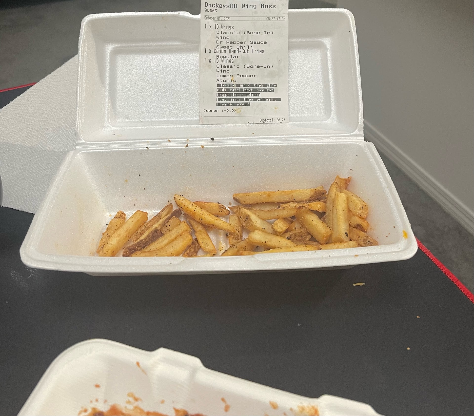 New to Colorado Springs, and was initially excited to try this wing spot. I ordered lemon pepper mixed with atomic sauce, my wife had a sweeter variety, and a side of Cajun fries. I thought they were going to be typical fried wings as you'd expect. Upon receiving my order I was disappointed to find that they are smoked wings instead. After visiting their website I saw the smoked wings was mentioned so this was my mistake for the misunderstanding.