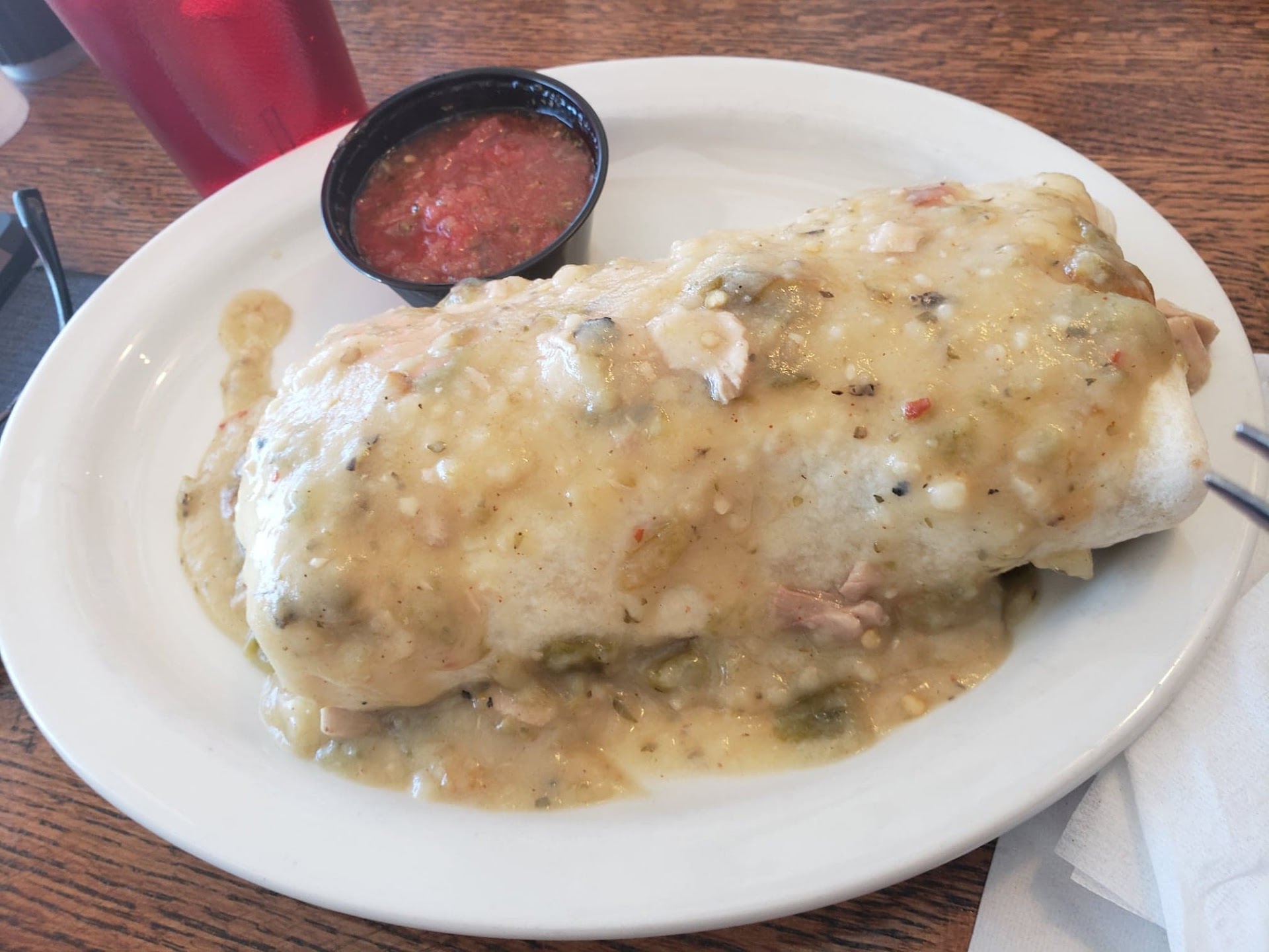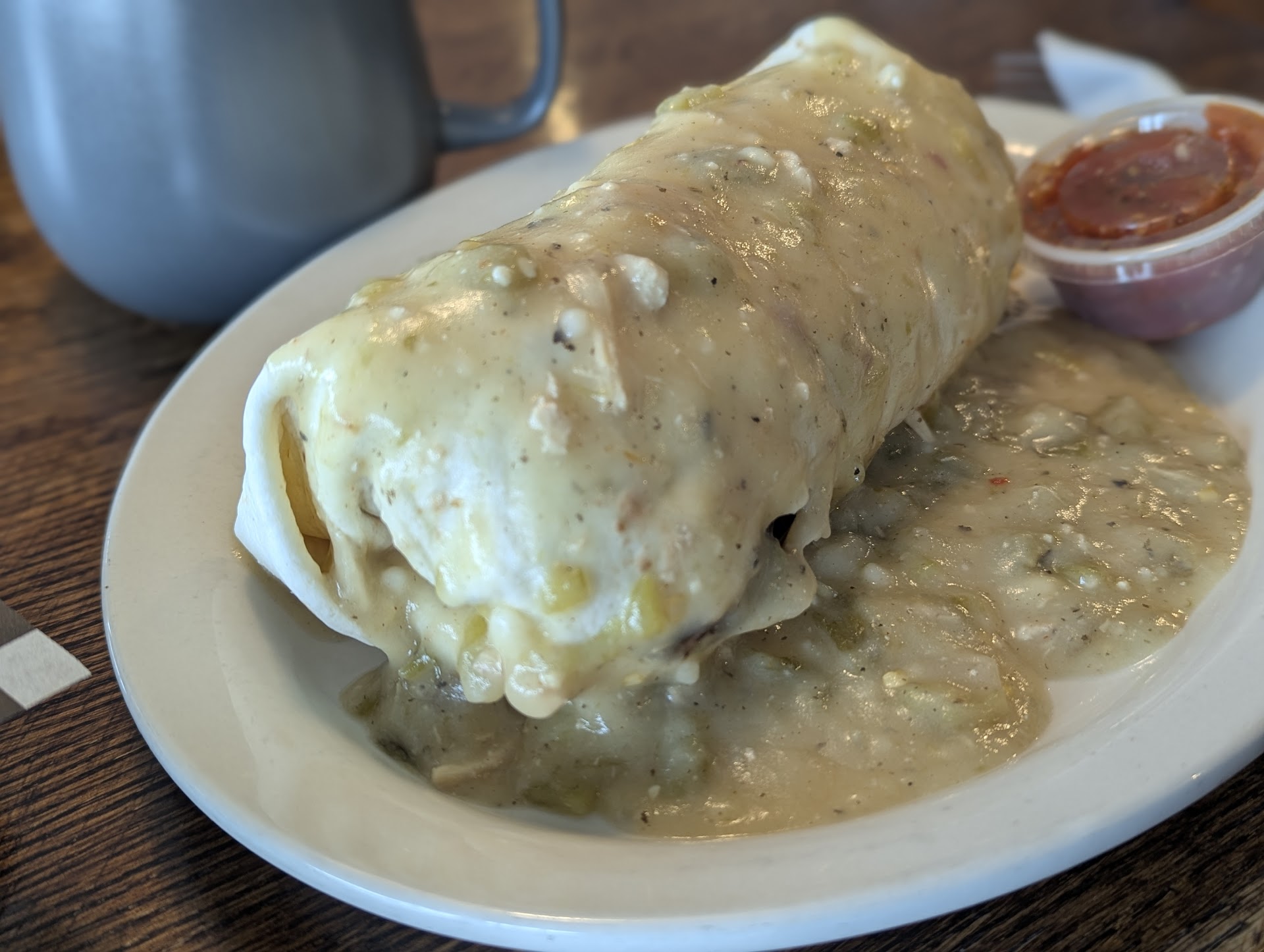 Breakfast Burrito – It was solid! Packed with meat, which was great, but I’d love to see a bit more egg in there (I know there’s an egg shortage right now, though). The smothering sauce was mild but tasty. Both my wife and I enjoyed it.