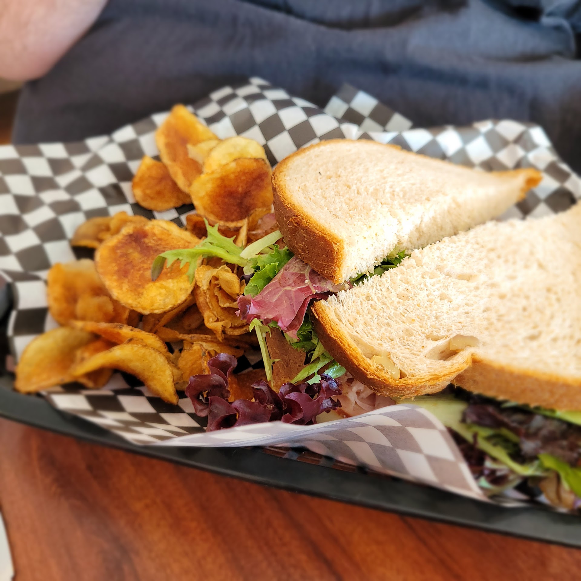 I happen to live down towards Fountain, so heading up North is a little ways away, but totally worth it. At first when I open the box, I was greeted by the home made potato chips! Not a bag of lays, or a handful of discs you can see through, but nice thick, golden hunks that are almost like a thin french fry. Like the crépe of french fries! Then you look at the whole thing and it looks well portioned for what you pay. It may look like a regular size sandwich, but once you pick it up, and see how big it is in your hand, you know it means business. The bread was REALLY good. So soft, yet didn't sponge into some soggy mess. Even with a 20 min drive, it held up, and was delicious.
