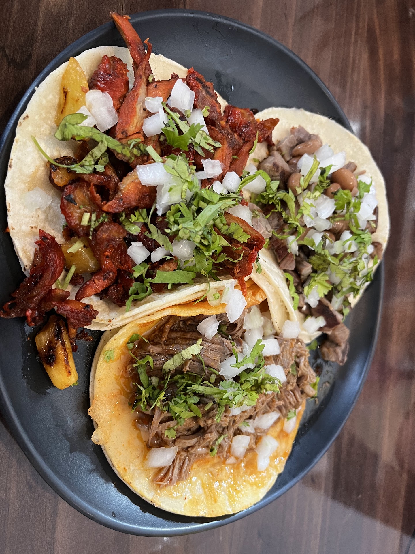 The simply good chicken and diced onions tacos, the flavorful pork Pastor tacos, beef ... are all great and so are the salsas. The guacamole cream and the (extra) spicy red salsas are favorites but they are all good.