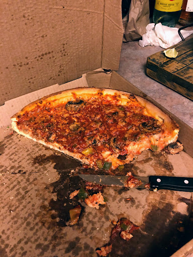 Read moreGood selection of pizza crust types (Chicago deep dish or regular), and even gluten free. Nice toppings and flavors, although my husband said the crust on the standard pizza was a little dry and flavorless (maybe it could use and olive oil bush over?). The Caesar salad was ok, definitely not a dressing made in-house. My main complaints were: 1) when I went in to pick up my food, I was the only person in the entire establishment, including wait persons and kitchen staff (~18 diners and 7 staff), who was wearing a mask! Wonder if anyone preparing my food might have coughed or sneezed on it. 2) The person at the cash register forgot to bring the salad I ordered, even though I am sure she could see I was being charged for it in register when I paid. I had to ask for it and might have left without it, if I had not remembered I had ordered the salad (or if another family member had called in the order and I hadn’t asked what was in the order before paying and walking out). She did grab it from the refrigerated cabinet when I asked her about it, but I could have easily walked out...