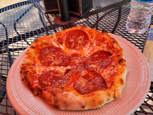 I ordered the Cheese pizza and the quality of the ingredients really shows how much thought went into creating something so delicious . The quality of the crust is on another level with the crispiness and the perfect amount of char on the undercarriage . You can really taste the apple wood they use in their brick oven .