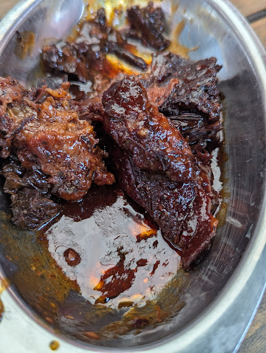 Protip: save yourself a couple bucks and get brisket instead if you were thinking of getting burnt ends. Here, those are just big cubes of brisket, rather than all that caramelized crispy goodness you get from real burnt ends or even cubing the point and then tossing it in a glaze and reducing it. Literally just cubed brisket, sauced before being cubed so I don't see how this differs from brisket.