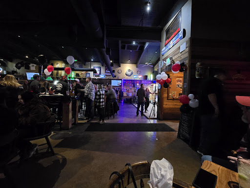 There is a since of being a bit dated or trying to hard to adhere to a more traditional dark wood, low light bar. Being the corner larger of units in a strip type plaza, there's plenty of room and ceiling height to relieve any sense of cramp, if busy.