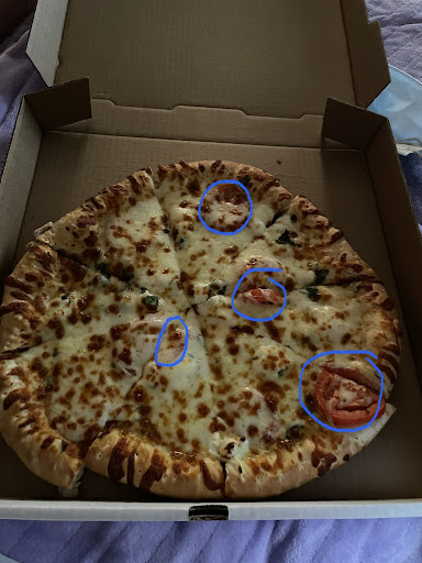 The calzone was a mess! Pepperoni was stacked up on one side, not spread throughout, couldn't even see, much less taste, the bacon, and the rest of the meat was just NOT good.