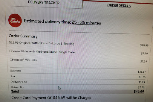 Read moreOrdered pizza and wings, when driver delivered it I said "Thank you", she replied that a proper thank you would be a tip. I stopped tipping this place because they screw up my order morwe often then not, which they did this time as well. I drove to the store to talk to the manager, his response was that it was hard for the drivers because no one was tipping lately. I told him that a tip was in appreciation of good service and not mandatory. I mentioned how it was a drivers job to make sure they were taking the correct order, he argued that it is hard to train them to recognize if the pizza was made correctly. He then refused to remake it and instead refunded my money. As I left I let him know that he was going to let corporate know about their bad service and poor attitude, he said that that was okay because he would be the one to respond. I will never order from this establishment again!