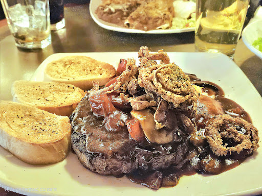 We ordered sodas and appetizers. Stating we would order our meals when the appetizers came out. Meanwhile we got our sodas one of which was a watered down version of the rootbeer and a half full glass of Pepsi. The wings came out to the table. This would be the best food of the night and it was chewy and rubbery, not to mention it didnt have the extra side of ranch we requested.Since the food was brought out by a runner and not our waitress, it wasnt until we were done eating the wings that she stopped by to take our order. Meanwhile we had empty drink glasses.