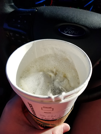 Read moreEvery time I come through here, which is almost daily, they never make my London Fog the same way. I came through yesterday morning and ordered my usual drink and then 2 tomato panini and an OJ. As I started driving and went to take a sip I noticed my cup felt really light. I took the lid off and it wasn't even 3/4 full (this was foam and tea bags sitting on top). I got to my sandwich and both of ours had almost no toppings. The automatic time stamps in the photos and the tag location are all within 4min of the stickers printed on the drinks.