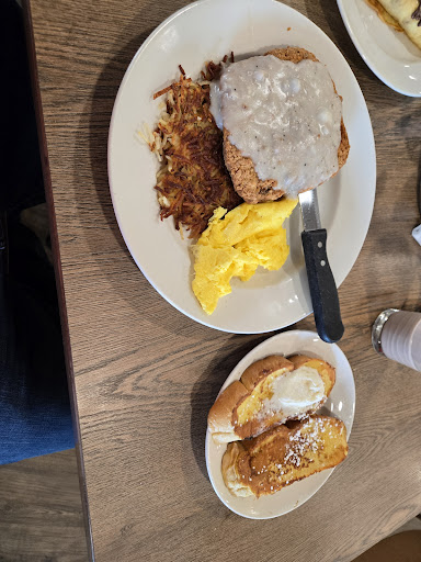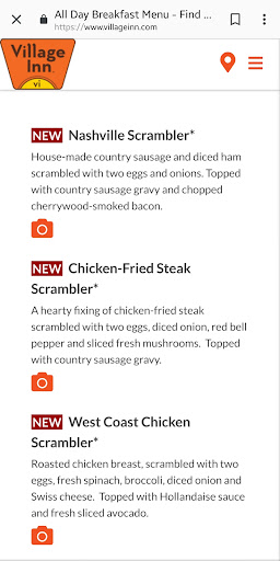 Not this time. My friend helped me move a couch into my place Saturday morning, so I offered to take them to eat. Asked them where they wanted to go and they said Village Inn. Yes! I love Village Inn .. this is the closest location to my new place, never been here. As soon as we pulled in the parking lot we both said “Eww!”. The sign out side was not the same sign, we hated it … but what we didn’t know was that was not the only thing changed. When we got inside, everything was different! White! Modern! Fancy! Why??! We both kept talking about how much we didn’t like the new look and how we prefer the old look. We were first in the waiting area, two other people walking in behind us. The host help them first since they were picking up delivery orders. But then disappeared for 7 minutes while we stood there at her podium. Then a couple walked in, then another, then a small family .. the line just kept growing. One of the staffed walked by and asked us where she went, we just looked at each other and shrugged so the worker just walked away. Finally the girl came back and asked us if we have a preference on where we sit, my friend wanted to sit in a booth, so I asked for a booth and she told us there were only tables with chairs left. Then why ask?? Now again, it’s just two of us. Me and my friend. Yet we get sat at a huge table .. why? It felt so weird for us. But whatever, we were finally seated and ordered food. We were both excited for the pancakes in our order, but no, why would that be good when everything else was not. The bottom of the pancakes were crunchy. Not crunchy like there were toasted bits, but crunchy like it was from something else left on the stove top and the pancake batter was poured on top. And they were so dry. My friend took maybe 3 bites and had to stop eating them. I forced myself to eat almost half the stack, but the dryness and mystery crunches were grossing me out. I had to stop.