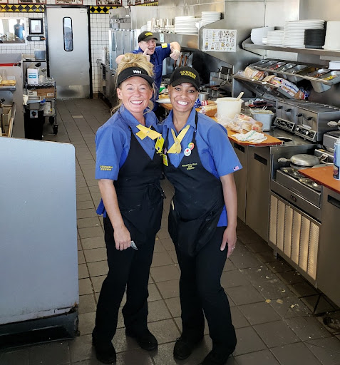Absolutely filthy. Inexperienced cook started falling being, waitress started helping the cook. She did NOT use gloves while handling the food, money, trash etc. She kept wiping her runny nose with her hand while cooking. Her snot hand was used to scoop the waffle batter out of the bucket with the ladle, all the while her hand is slipping down the ladle into the batter on the ladle and then dipped back into the batter. Did this 4x. She then needed to get the batter off her hand, so she rinsed it lightly in the sink - no soap used at all. They way undercooked my eggs, forgot my bacon, forgot my daughters waffle. Asking for the items that were forgotten is what got the waitress involved in cooking in the first place. They then burned the waffle, burned the bacon which they then served to a different table. They recooked the eggs correctly, but by that time watching the gross mishandling of the food and also taking notice of the general disarray and overall filth of the kitchen - we stopped eating - received a discount for the missing bacon, paid the bill and left.
