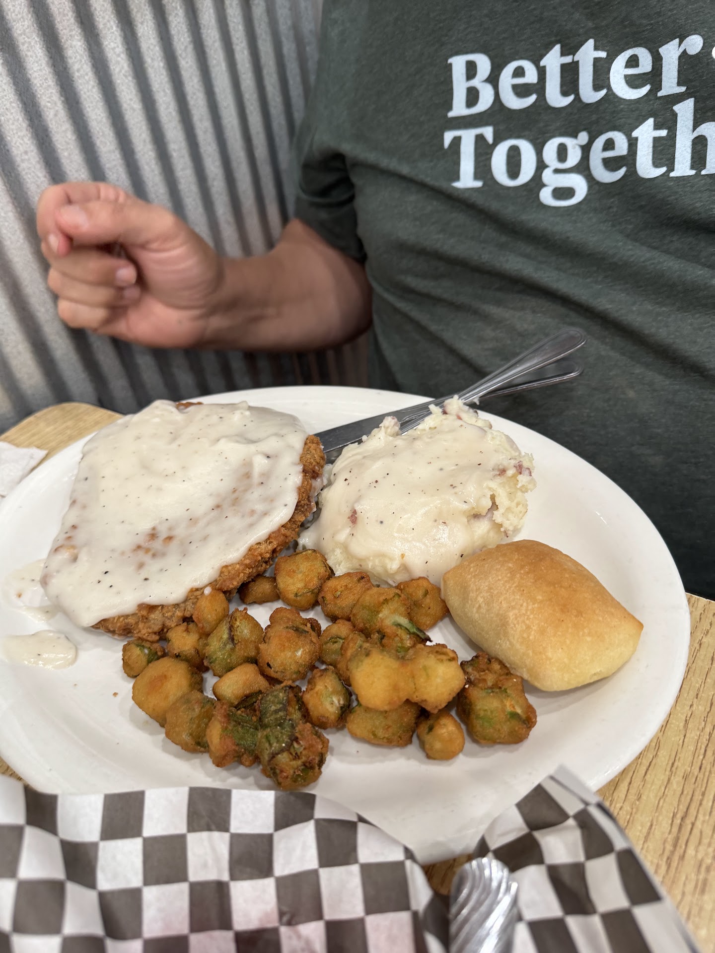 Would have given it a zero but the water was good. We ordered oysters that were very expensive and very small and of a low grade. The fish we ordered was burnt on the outside and not completely done on the inside. It must have been put into the fryer frozen. The fried mushrooms were also burnt on the outside. The fries were soggy. The chicken strips were ok but small. The salad had one small piece of cucumber and one cherry tomato that’s all. The dressing was good. The water was good and the sweet tea was ok. Will not ever eat here again. Too expensive and food horrible. Also door at front and back kept being left open and it was very cold outside. Waitress kept insisting that we order a dessert! Then when one at our table ordered one they didn’t bring it. We reminded them twice before it was brought . I would not recommend this...