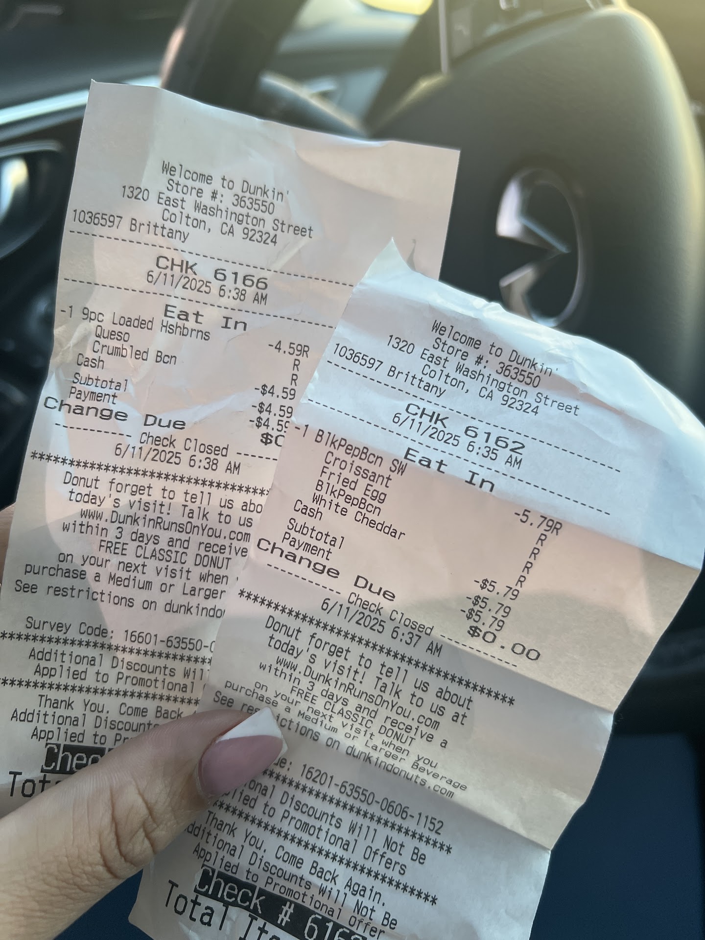 Ā Ā Ā Read more0 stars because of the shift lead by the name of Jewel. I ordered via the app and upon arrival I waited for my items. Finally Jewel asked me if I was waiting on something. I stated yes, I'm still waiting on my bagel. She says I'm yes we don't have any plain bagels. I said I'll take a refund and she told me to request a refund on the app. I explained that it wasn't possible. To make a very long story short I handed her my phone and she couldn't do it either because like I stated it's not possible. She refused to give me the managers info nor inform me of the other store in Fontana. She processed with it's not my responsibility to refund you. That's your responsibility. She states she can't give me a drink for the same price or a gift-card for the price. There's nothing she can do today for me. She was rude to say the least and wanted an argument. She also insisted I get another food item at some point which I told her my daughter didn't like anything but the plain bagel. She stated then why are you buying from here. What? I then asked another employee for a managers info and he assisted by telling me there's another store in Fontana. Jewel appeared upset that he provided the info, left to the back another female who was extremely nice gave me the store managers name and apologized for the situation. Lastly Jewel said I have all these witnesses when I told her I'm not going yo argue with her and she was being rude when in fact they apologized when she left and appeared appalled by her behavior. I still left paying for an item...