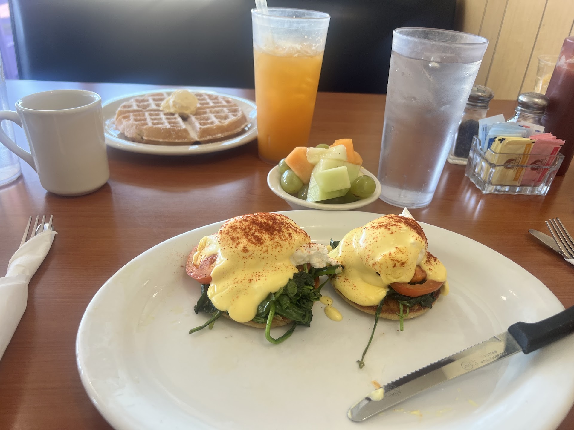 Read moreHouse of Eggs Cafe is our new favorite breakfast spot, hands down!! Their food is EXCELLENT and the quality was so fresh that I am still reminiscing about our meal we had yesterday. I highly recommend getting their Orange Juice as it is freshly squeezed and such a treat compared to the store bought variety. The Eggs Florentine were cooked perfectly and the flavors worked harmoniously with their House-Made Salsa. It is on the spicy side which I like but just a warning for those not that into heat it’s definitely worth trying if you like spicy things. The Waffles were heavenly, just what you’d hope for and still warm after we ate our other plates first. My partner and I are vegetarian so we were able to get extra potatoes instead of meat. Their Home Potatoes and Hash Browns were so crispy and deliciously paired with their Salsa. It was pretty busy on Sunday Morning but our server was so friendly and cleared a recently open table for us while she was juggling her other tasks with ease. I can not say enough great things about this place and look forward to coming back again the first chance we get. I hope that anyone reading this has a chance to visit because it is definitely worth taking any drive you need to make it down to the House of Eggs Cafe if you’re looking for an amazing breakfast! Be well always and many blessings to...