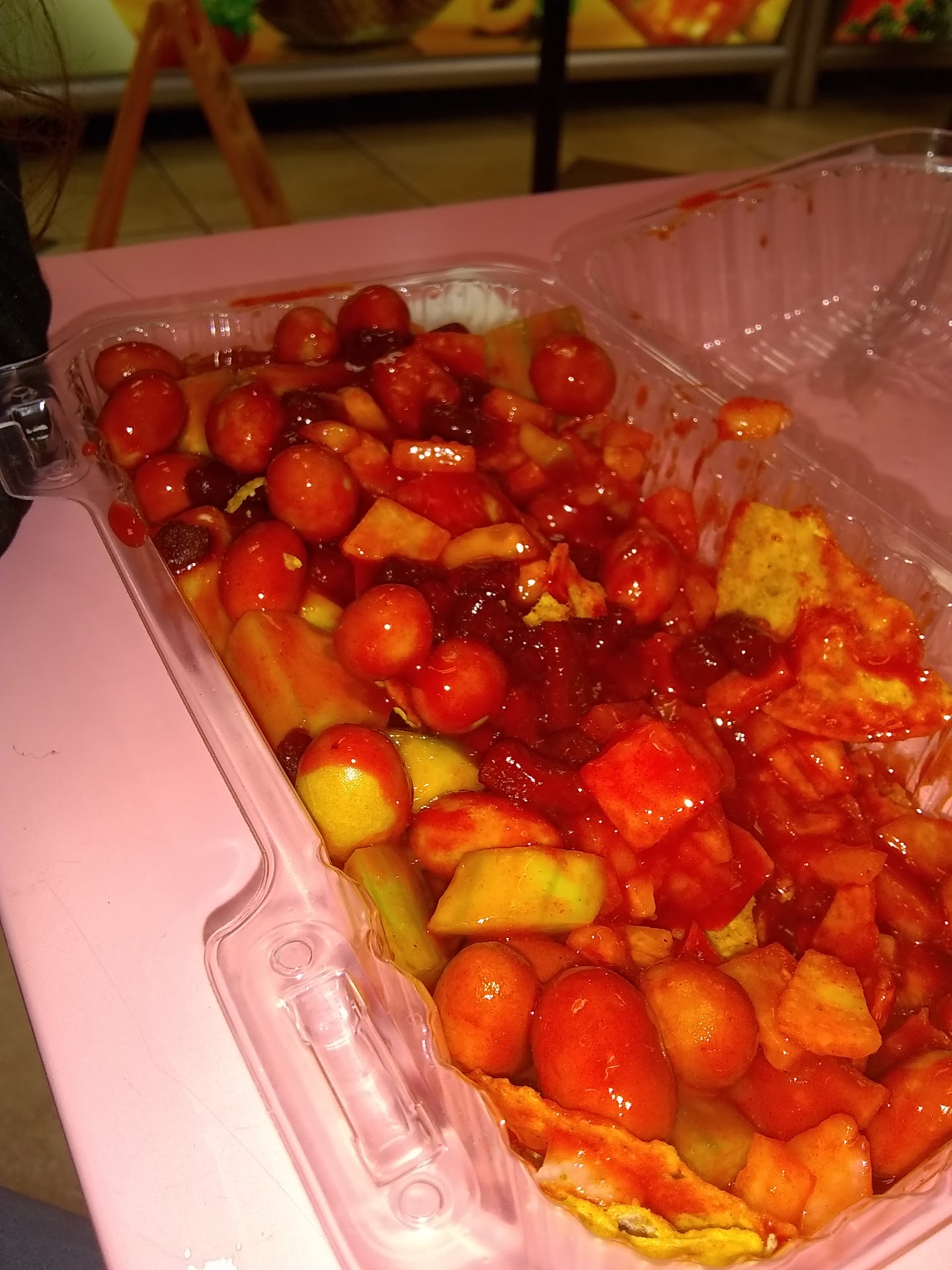Read moreI've always been a huge fan of this store but after my incident today with the manager and one of new workers I won't be coming back. I ordered Tostilocos and had to go back because the mango was hard and still green.i asked the girl to please make me some without mango and she told me that was against their policy so I asked to talk to the manager. The manager got defensive and mad Idk the reason as to why because I was just asking for what was fair . Long story short, manager told the girl to take out the mango and this is what they gave me back...I had to throw them away because I don't know if they spit on them or did something because when they went to the back they started laughing and saying stuff in Spanish. Michoacana you lost a...