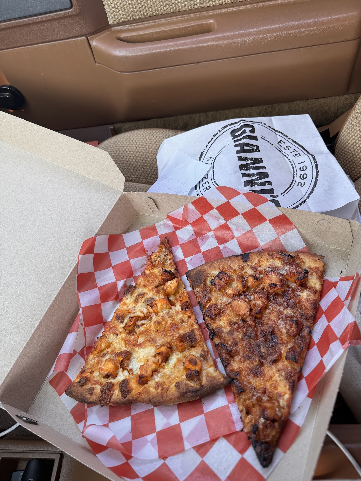I ordered a chicken vodka wrap and 2 slices when I went in. He put my barbecue and buffalo slices in and then rang me up. After; whilst my slices were still in the oven, he used the bathroom for what seemed like 10 minutes. When he came out he put the slices in the box and then packed my stuff up. I was in a rush so I didn’t check but when I opened the box later I was not surprised to see my slices burnt and the bottoms looking like char. The chicken vodka wrap never disappoints but if you want anything else I suggest you save your money and go across the street to Orlando’s. I spent a total of 23 dollars and the best part about the situation is he tried to ring me up twice and when I explained I had already paid before he took his lunch break in the bathroom he belligerently ridiculed me until I showed him the proof I paid on my phone. I’ve been around this place for years now and I made the mistake of buying pizza instead of just the chicken vodka wrap. Won’t be returning. By the way if you buy the buffalo chicken wrap you...