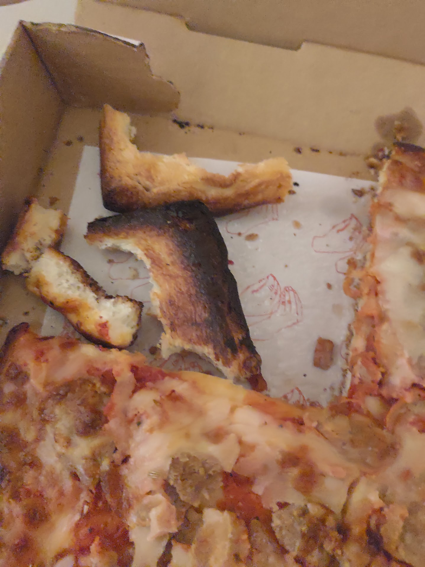 The pizza was basic and cooked so the meats were dry. The garlic knots maybe the best thing about it.. (BTW the knots don’t come with any sauce they are $2.00 per tiny cup the person who takes the order NEVER mentions) the sauce has absolutely no seasoning. The chicken tenders were cooked to the point the kids wouldn’t eat them. The Dr. Pepper was in cans when I asked for bottles. They even said the only thing that had in bottles was Dr. Pepper.. so I ended up with 2 16 oz cans of Dr.Pepper vs 2 20oz bottles. The only thing that came out good was the Egg Plant roll.