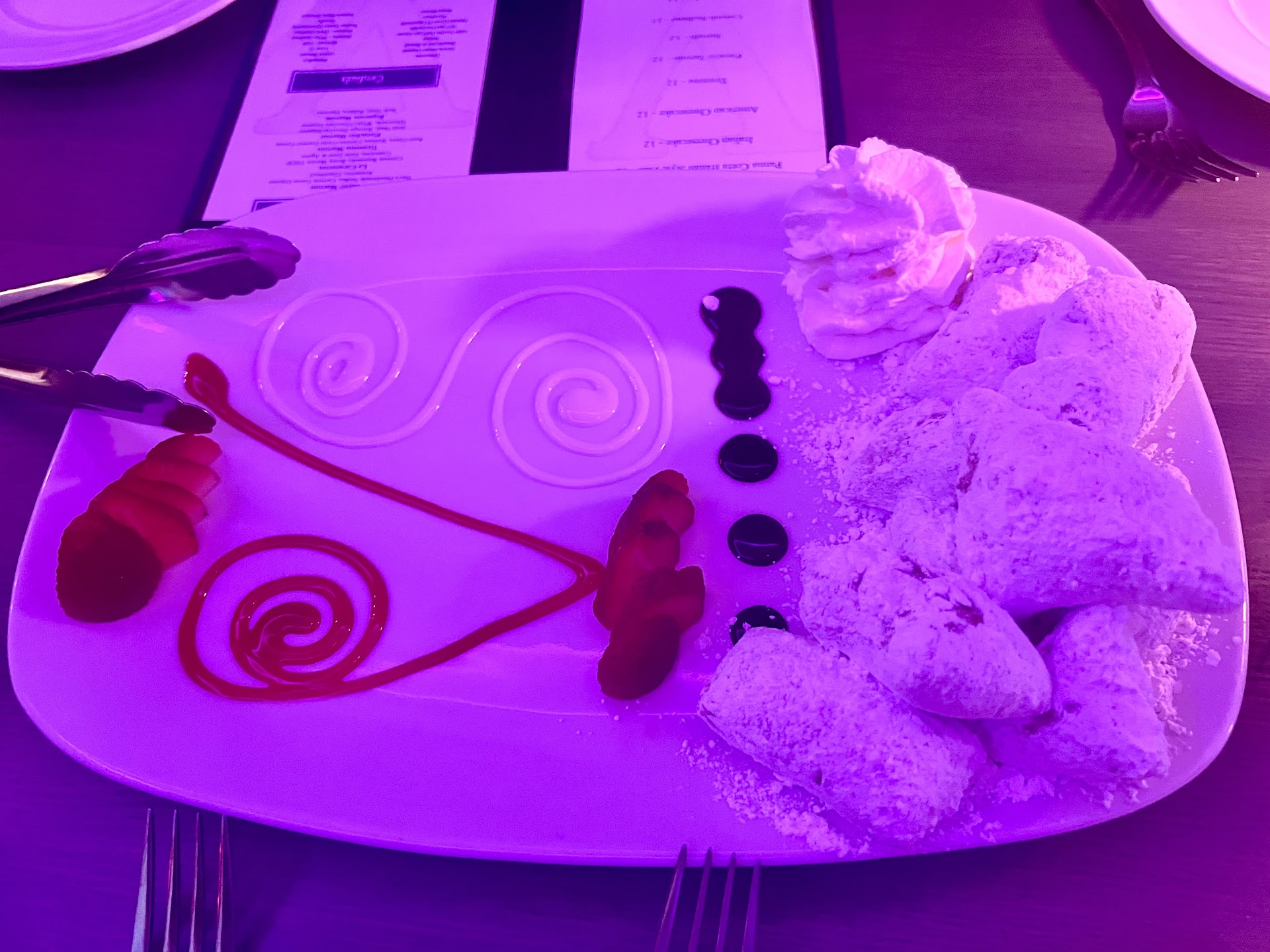 We couldnāt resist the Zappolles for dessert, and they did not disappoint. These warm, fluffy doughnuts were dusted with sugar and served with dipping sauce and strawberries offering a sweet, indulgent finish to our meal.