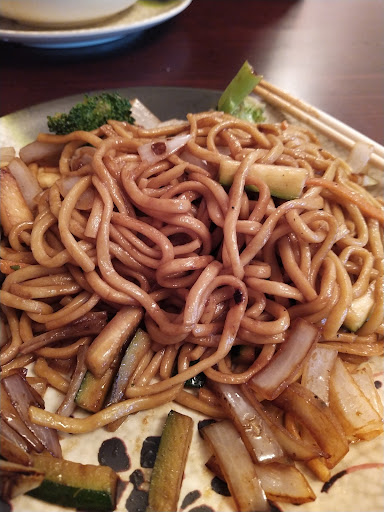 I had the veggie yaki soba. The noodles were chewy and gingery, the veggies were cooked to tender but not to mush. Everything had that great seasoned wok flavor.
