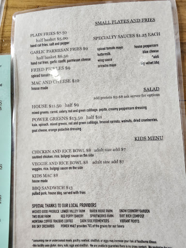 Read morePopped in after a ski day. The staff was friendly and our server was very helpful. The ambience was comfortable and warm. Lots of staff standing around having personal conversations, but it seemed to be the norm and all the customers seemed content. We ordered the chicken sandwich as recommended by our server. It came on a smaller sized plate with lots of delicious sliced potato fries. The flavors were great. The only bummer was the assembly of my meal. The kitchen staff buried the chicken in so much sauce that before I had my 3 rd bite, my sandwich completely fell apart and my fries were wading in a plate full of sauce. This made them soggy and we weren’t able to finish them. Which was a bummer because it was all so tasty. I also couldn’t finish my sandwich as presented because the bottom bun was soaked through. We were forced to disassemble and discard and had to use a fork and knife. It’s a shame because we left food on our plate drenched in sauce. I was hoping the server would have noticed when she cleared our plates but she didn’t. We had dessert which was a perfect portion and tasty. Consistency is key. We will try them again. Maybe the kitchen staff was just off that day. The ingredients and flavors were awesome, too bad it was one persons lack of attention to assembly that soaked an otherwise yummy plate of good food! The beer flavors went great with the food and we were pleased with our recommended choices, the stout is delicious. Going to bring my...