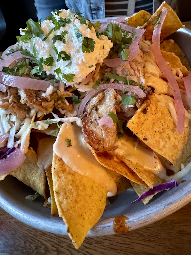 Read moreThis place is so cute, quaint, and in a great location in Columbia! The hostess we had was very responsive and kept the long line going. She also helped run food and clean up tables when she saw the opportunity. Our server was very attentive as well. She came around just enough, and we were able to get our food, refills, etc. In a short amount of time. Because it's small, beware that if you're seated in front that the front waiting area can get loud. It got loud tonight because it was very cold outside so a lot of people congregated inside. It got hard to hear my partner at times because of the noise. Luckily each table in front is a good distance from the rest. Food is very good. Suggestion: don't get any sauce with the fries because I don't feel like it's worth the price. Nor are the sauces the most compatible with fries, specifically. My partner said the tiger's blood margarita was good, but not memorable. All together we got the fries with queso and buttermilk sauce, nachos with pulled chicken, canteen burger, and Korean tacos. We got way too much. Very good portions. They don't look large, but they are...