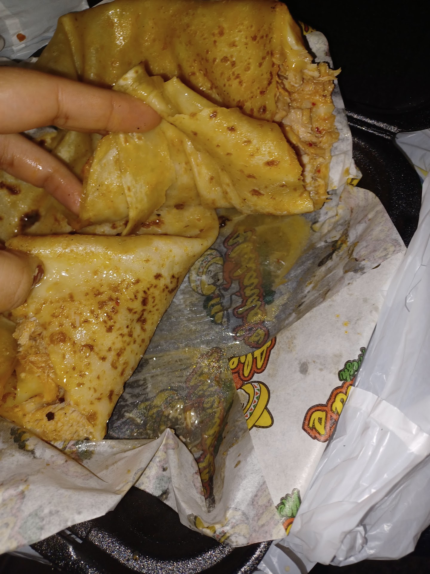 Read moreI will never eat here again!! (Ive eaten here multiple times before) Me and my partner went around 10pm to grab 3 different meals to share. From the first interaction while ordering I could tell the person taking my order was in a rush. At the time I understood because the line wasn't the shortest. We were the 2nd car in line and ended up waiting almost 30 mins. When I went to grab our food I made sure to double check my order because I could already feel that there would be a problem with my food. The entire interaction at the window felt extremely rushed as well. After going home we checked our food only to find instead of a quesadilla I had an enchilada instead.
