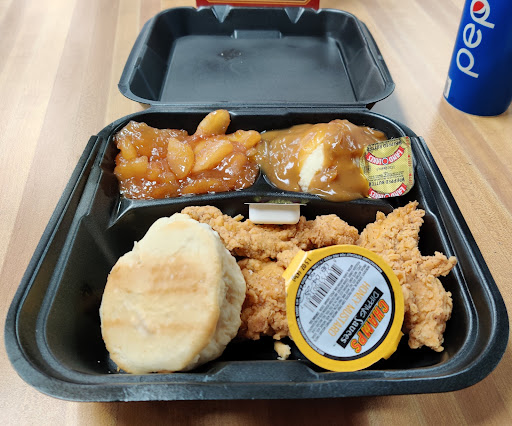 Read moreGood place to get a meal. The staff is friendly and the food is a good value. Only minor issue is that the tenders were not hot, but warm. However, they tasted great otherwise! I had the mashed potatoes which were delicious, and the cinnamon apples which were awesome! And...the biscuit melted in...