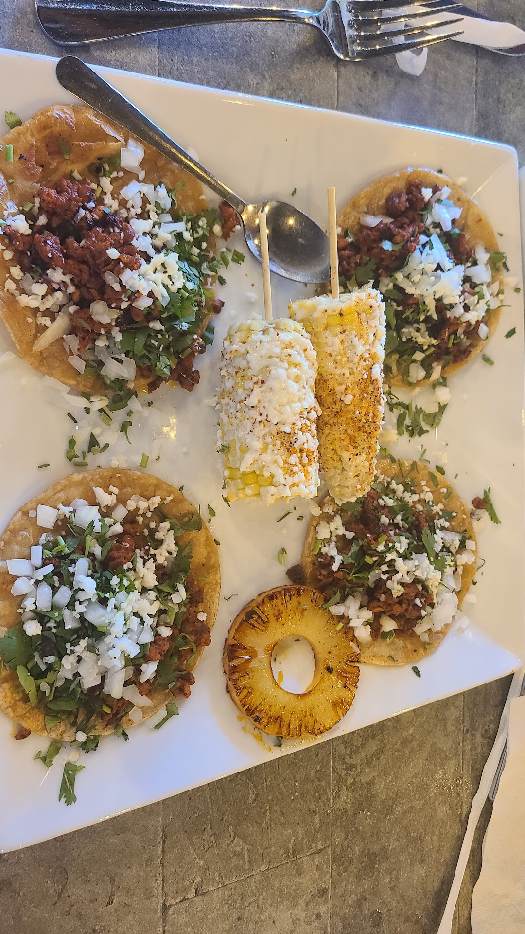 Read moreI always use star ratings to determine where to go, but rarely leave my own. However, this trip deserves a 5 star review. Everything was amazing! From the drinks, food and even bathroom (per my daughter). First, I love spicy margaritas and it's great if there's one on a menu. This place, had a full spicy margarita section with different flavors. I got the spicy cucumber margarita and it was awesome. I also get tacos al pastor at most Mexican restaurants and these are really good. I substituted and asked for the Mexican corn instead of the bean soup and it was great too. The salsa was a bit sweet for my taste so I asked for a spicier salsa they delivered. It had a slightly smoky flavor and delayed spice that was perfect. We got the queso, which after my 10-yo daughter tried she exclaimed 5-stars for this place, even before her main course. She got ala carte crunchy tacos and she enjoyed but was pretty full from chips, salsa and queso. My hubby got the fajita chimi and said he...