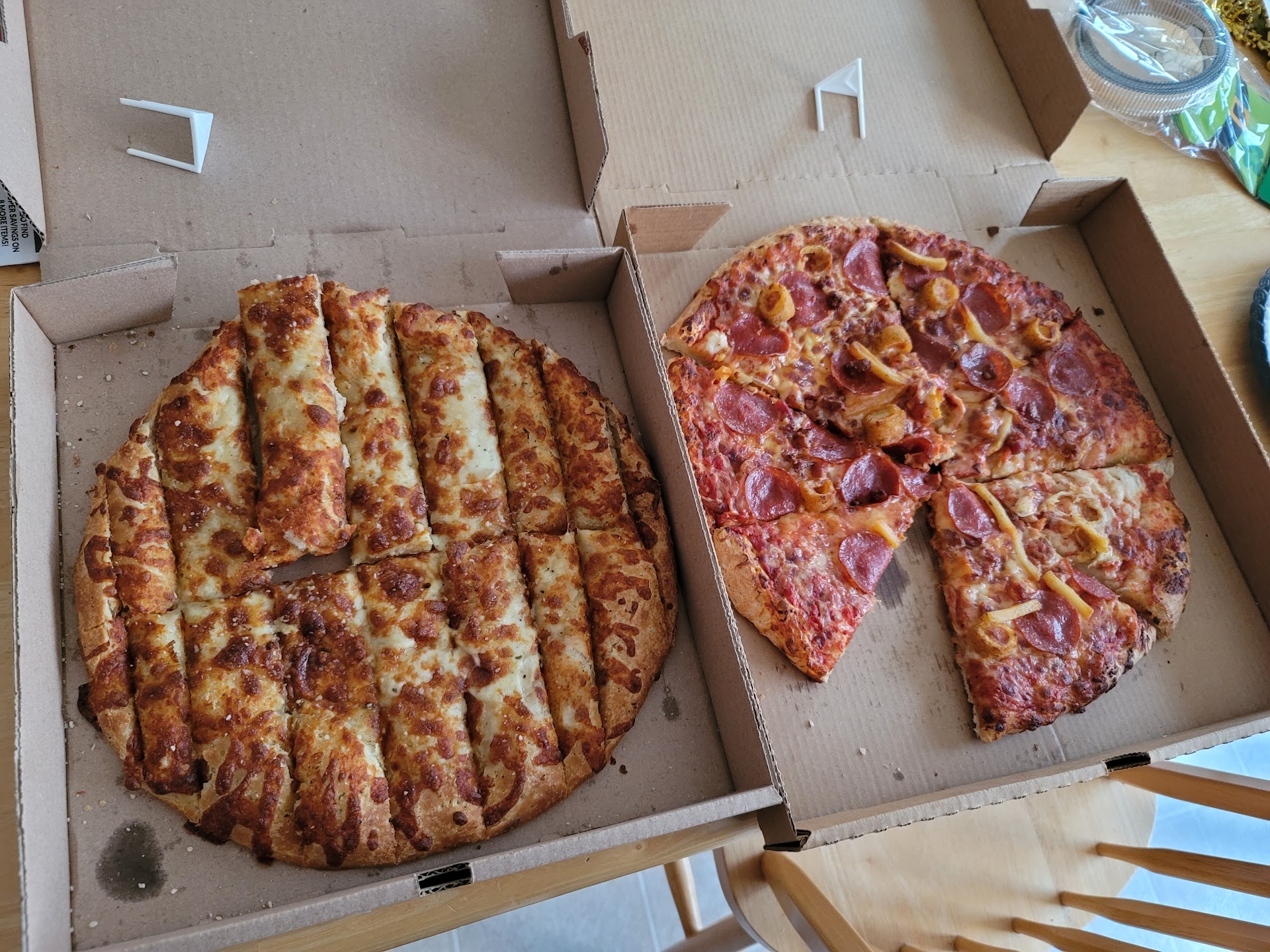 Orders are placed at the counter, where we were helped by a woman who was absolutely fantastic--friendly, patient, and accommodating, especially considering that several people in our group were visiting for the first time. After ordering, you can choose to sit at a booth, high-top table, or at the bar. The atmosphere is casual and inviting, with TVs throughout, a music machine, and even a pool table for entertainment. Since I'm currently following a fasting diet and skip breakfast and lunch, I ordered my meal to go so I could enjoy it for dinner. Having had plenty of pizza the night before at Shakespeare's, I decided to switch things up. I went with a pound of boneless wings--half buffalo, half mango habanero--and added a side of beef toasted ravioli. One of our local coworkers also ordered the XL cheese bread for the table, and I can confidently say, based on both this visit and past experiences, it's easily in my top three for cheese bread anywhere. Everyone in our group was happy with their food, from the pizzas to the other menu items.