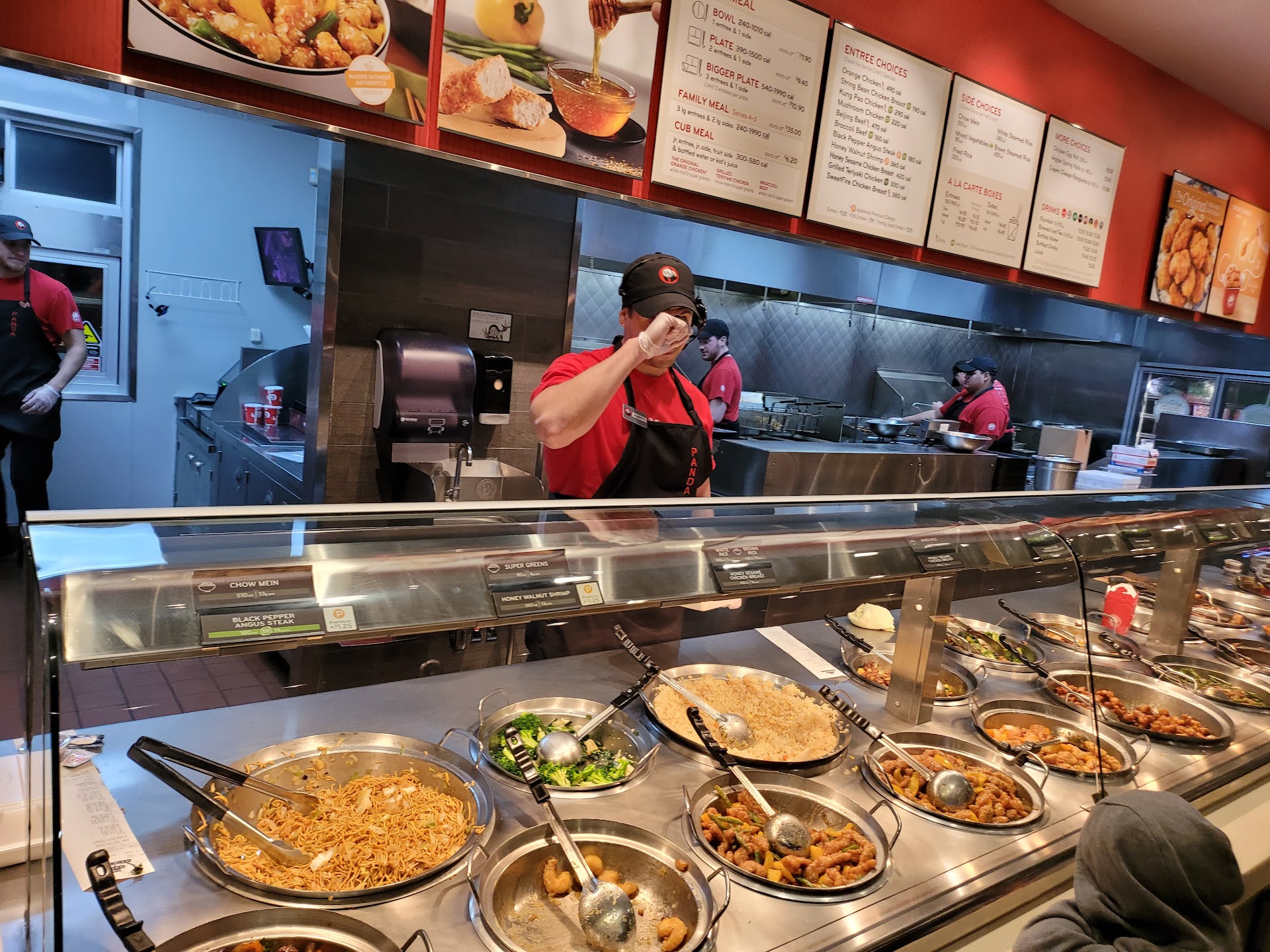 Read moreStopped in to grab some lunch and had one guy working counter one girl was working the drive-thru and Taylor was cleaning off the counters I noticed she was putting the food that fell onto the counters back into the containers that they came out of specifically the sesame chicken I didn't think too much about it except that it would have left its container not sure how long. she was keeping the countertops clean but in the process I noticed that she was scratching her eyes and her face right over top the food and then she dropped the cleaning rag onto the floor...well you would think a normal food safety trained person would take that cleaning rag and put it in a dirty container but that's not what happened Taylor decided that it would be better to pick up the rag off the floor and by the way all the food particles that was coming off of the counter was being swept onto the floor not in any type of container so she picks up the dirty rag and continues to wipe off all around the food bowls at the main serving line where the rice chicken greens and noodles are. I said Taylor do you really think that's appropriate she looked at me with kind of a deer in the headlight look I said you literally just dropped the rag onto the floor you picked it up off the floor and now you're wiping down the food area I don't think that's a good idea. She didn't say anything just turned around put the rag in a receptacle and went over to the drive-thru area and tried to look busy. I don't know about you or anybody else on this planet but I don't think that dropping rags onto the floor and then using them to clean off food serving surfaces would pass any kind of health inspection standard. you be the judge. This happened at 1:00...
