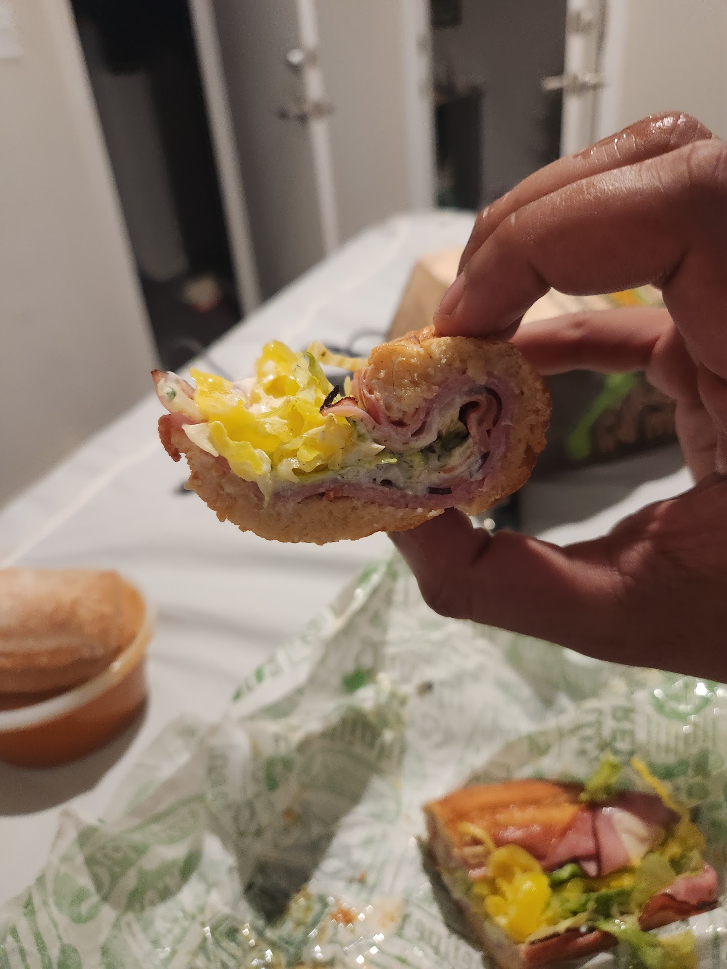 So rarely rate down at all on service from oneindividual. Working front facing jobs are a pain. However there is one individual there that is working strictly on making sandwiches pretty much every time ive gone there on Friday and Saturday evenings. The only good thing I can say about this guy is that he never misses work because me getting a sandwich is wholly dependent on him not being there and i havent gotten a sandwich last four times cause dude is there.
