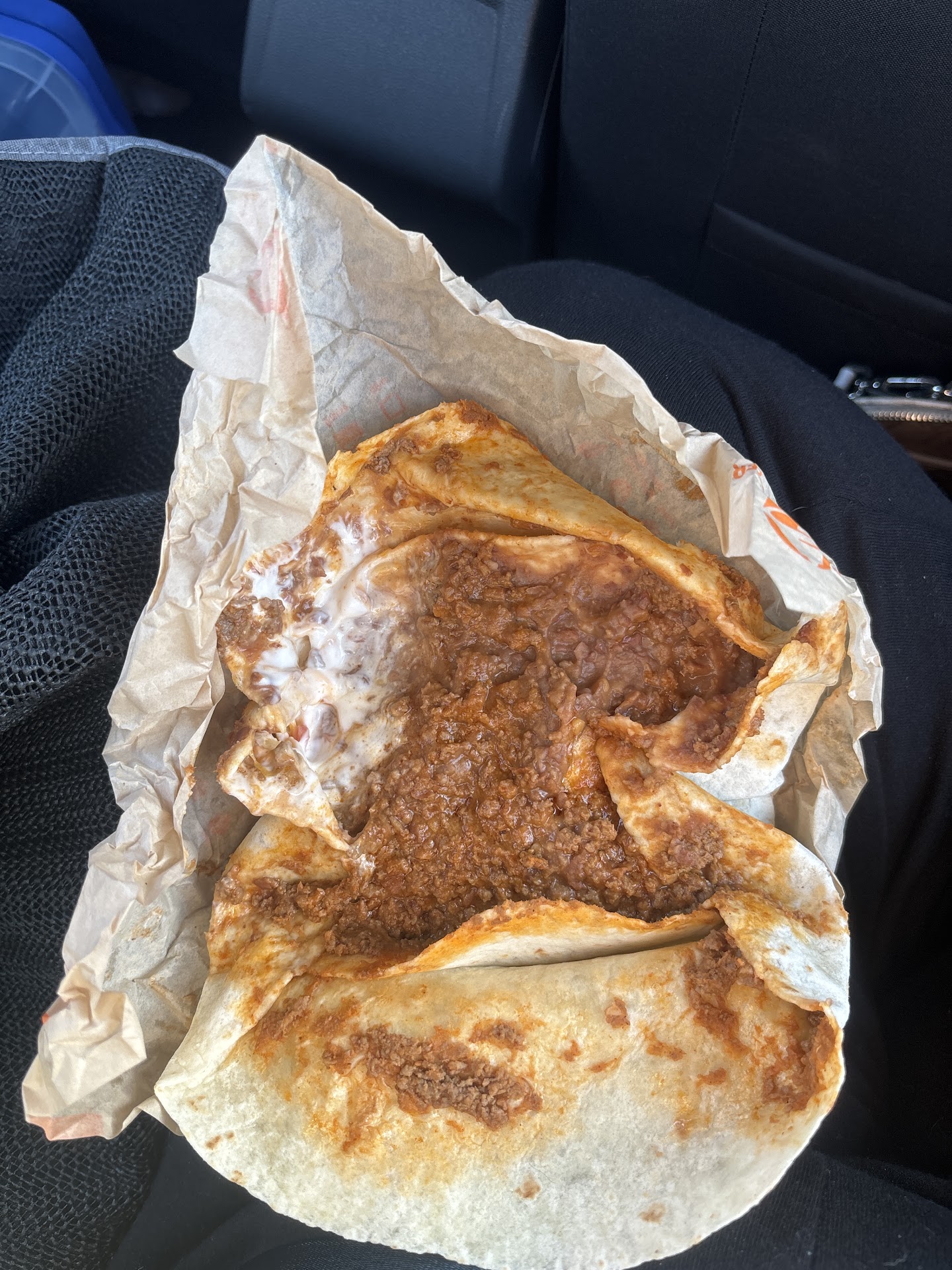Read moreI have never had a worst experience at Taco Bell than I have had at this Taco Bell. Last night around 12 am I went to Taco Bell. I ordered a mobile order because they were only accepting cash. When I got there I sat in the drive thru for 45 minutes before I got my food. I went home to eat and I didnât receive a single thing I ordered. Even the drinks werenât right. I called and spoke to Leo and he said theyâd correct it today. I went today and they basically accused us of lying. Then there was an older laying with glasses and grayish hair, short who refused to help us and flared her arms at us when we asked for help. Then there was this female named Mia who just gave us attitude and bossed around a coworker to do her job for her. I have never experienced worse customer experience than I did today and Iâm on vacation. The food they gave us to âcorrectâ our order was literally a bag full of random burritos. The picture I attached was a picture of what weâre gonna call a burrito? I couldnât even tell you what it is. I called corporate and theyâre refunding my order. I have family that just recently moved here and they now will never got to this Taco Bell. There was a worker with red hair who was amazing. He helped us to the best of...
