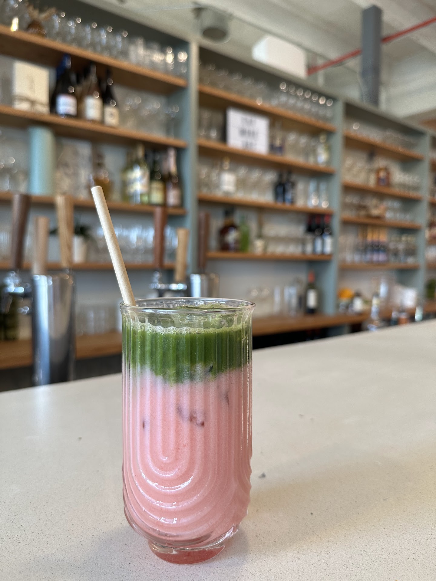 Read moreThis is a new favorite coffee shop for me, and a sign that Columbia is growing in the right direction. The atmosphere and aesthetic is clean and comfortable, with leather couches, padded seating, plenty of tables, and a large bar area with even more seating. The barista was extremely friendly, conversational, and helpful. The two drinks (pictured) were specialty lattes and both were incredible. The strawberry matcha latte was delicious (and I don't typically like matcha), and the other latte (a blackberry cold foam vanilla latte), was one of the best I've ever had. The coffee menu was adventurous but not too weird, as some craft coffee shops can tend to do. I also ordered their breakfast sandwich, which was incredible. It had egg, the best smoked bacon I've ever had, and a pesto aioli, stuffed between focaccia bread. I didn't partake in any cocktails, but the menu shows a variety of great cocktails for the afternoon/evening, as well as an extensive craft beer and wine list.