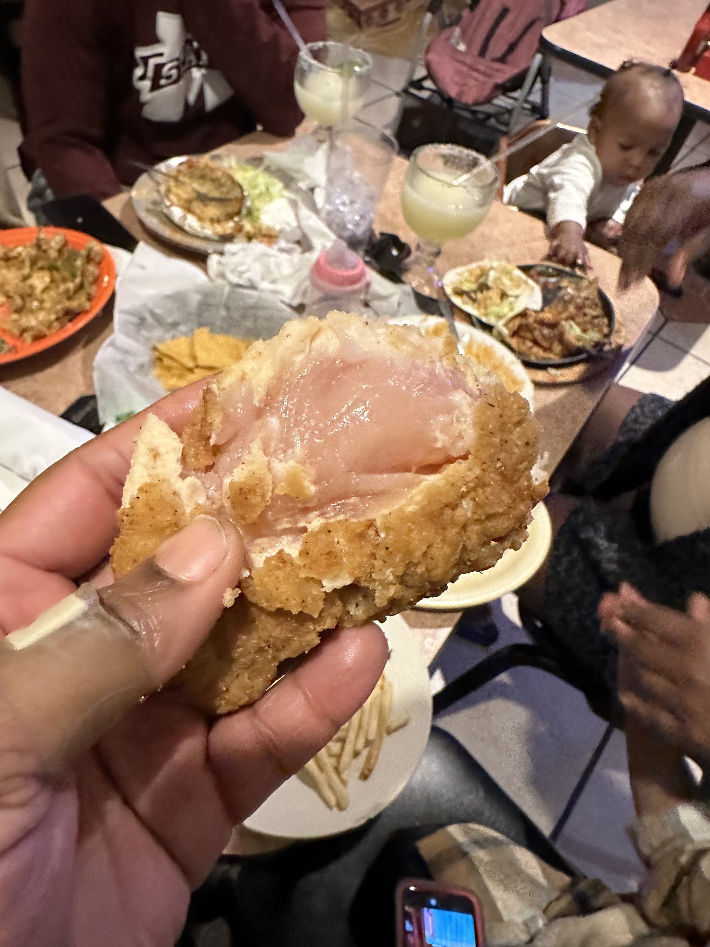 Read moreThis has the worst experience ever at a Mexican restaurant. My family and I (Party of 11) visited this establishment on a Sunday night and our waiter initially stated that we would have compliant and boy did we. Our waiter brought us the wrong drinks with wrong liquor and attempted to add Hennessy which was requested when we order to a wrong drink that he made with tequila. My food was extremely cold. He gave the wrong food to my nephew and then took it after he started eating it and gave it to my son. He forgot two of the kids complete order and tried to quickly fix it and brought my niece this raw chicken shown.. my sister food was wrong and my sister in law waited til 15 minutes before we left for a drink we ordered two hours ago. This was awful ! And we weren’t given any type of apology just charged an automatic tip because this waiter didn’t deserve ANYTHING! And a waiter who wasn’t even ours had to bring us to go plates… man man yall gots...