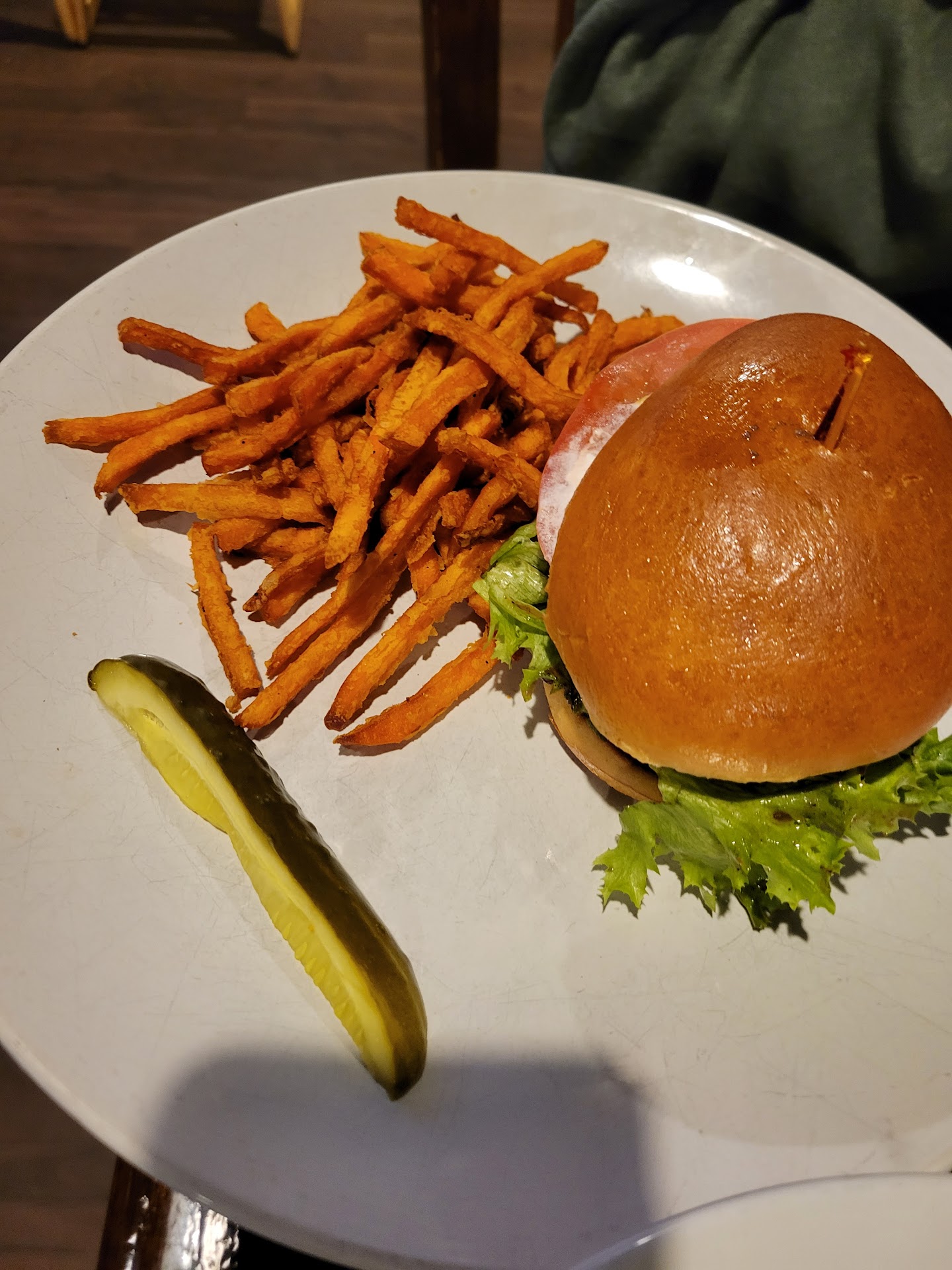 Did I mention I brought my dog? Daphne enjoyed an unseasoned 6oz well done patty burger patty off the a la carte portion of the menu. (Talk about convenient!) The other server, Milly, even treated Daphne to a little pup cup! What a delightful staff all the way around! Thanks Milly!