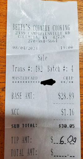 Read moreHaving lived in Columbia most of my life. I've eaten with my family at Betty's for years. Last time we were there for buffet take out. When we went to check out, the cashier opened our containers to see what we got. This astonished me, especially in light of Covid, that she handled our food this way. Not to mention the containers are meant to keep your food warm until you get home. I asked her what she was doing, and she was counting to make sure we didn't take too many vegetables!!!! She told me I had taken 4 instead of the allowed 3. I asked her what difference it made if I took 4 small portions of vegetables instead of 3 huge portions? Makes O sense, especially when I hadn't even taken any of the "free" sides that they don't count, like rolls, hush puppies, and cornbread. Someone in management needs to tell Annette to lay off before they lose...