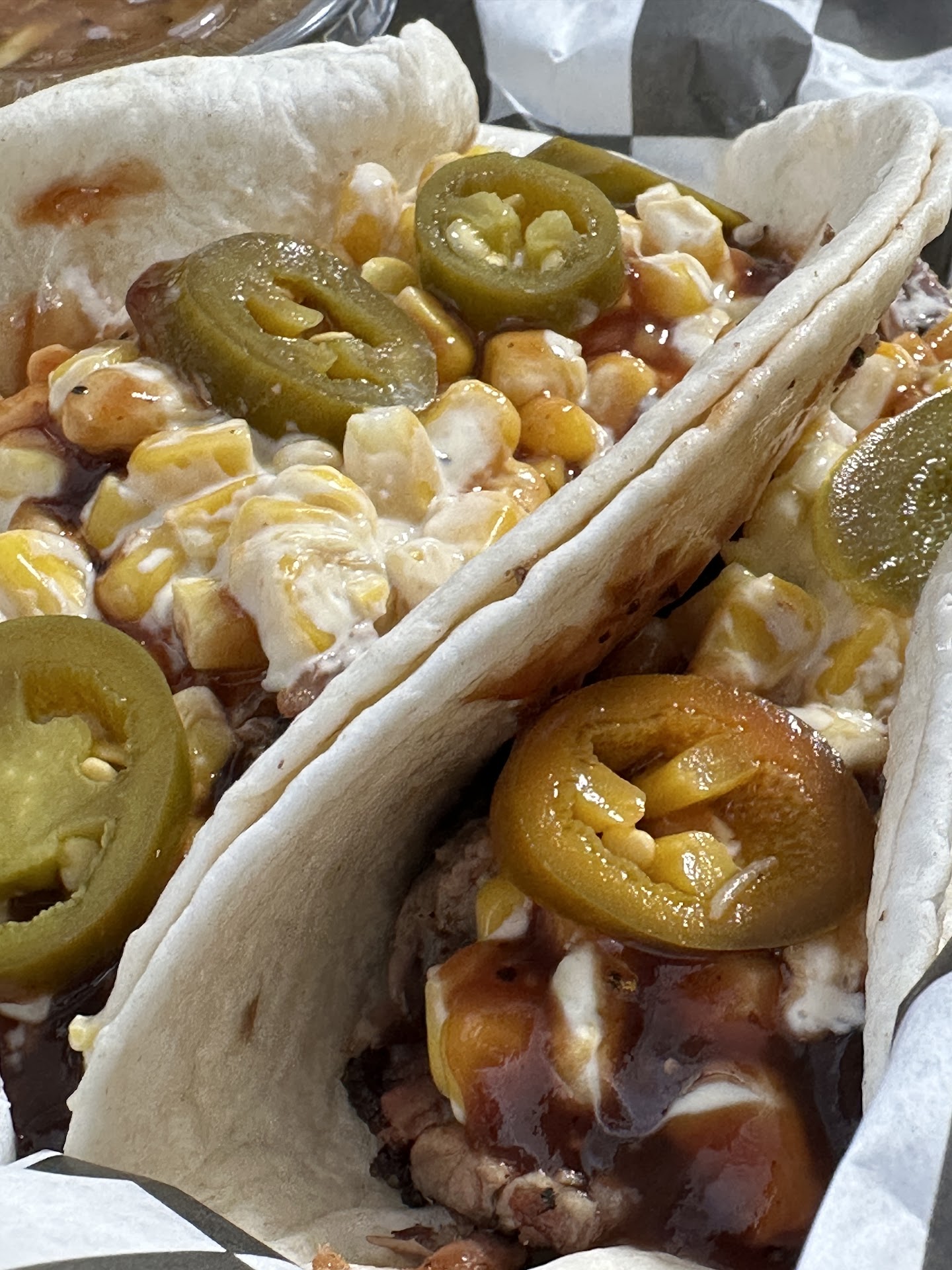 One of their standout dishes is their barbecue tacos, which bring together perfectly smoked meats, creamy corn, tangy pickled jalapeños, and a drizzle of sauce, all wrapped in a soft flour tortilla. It’s an explosion of flavor that you won’t find anywhere else.