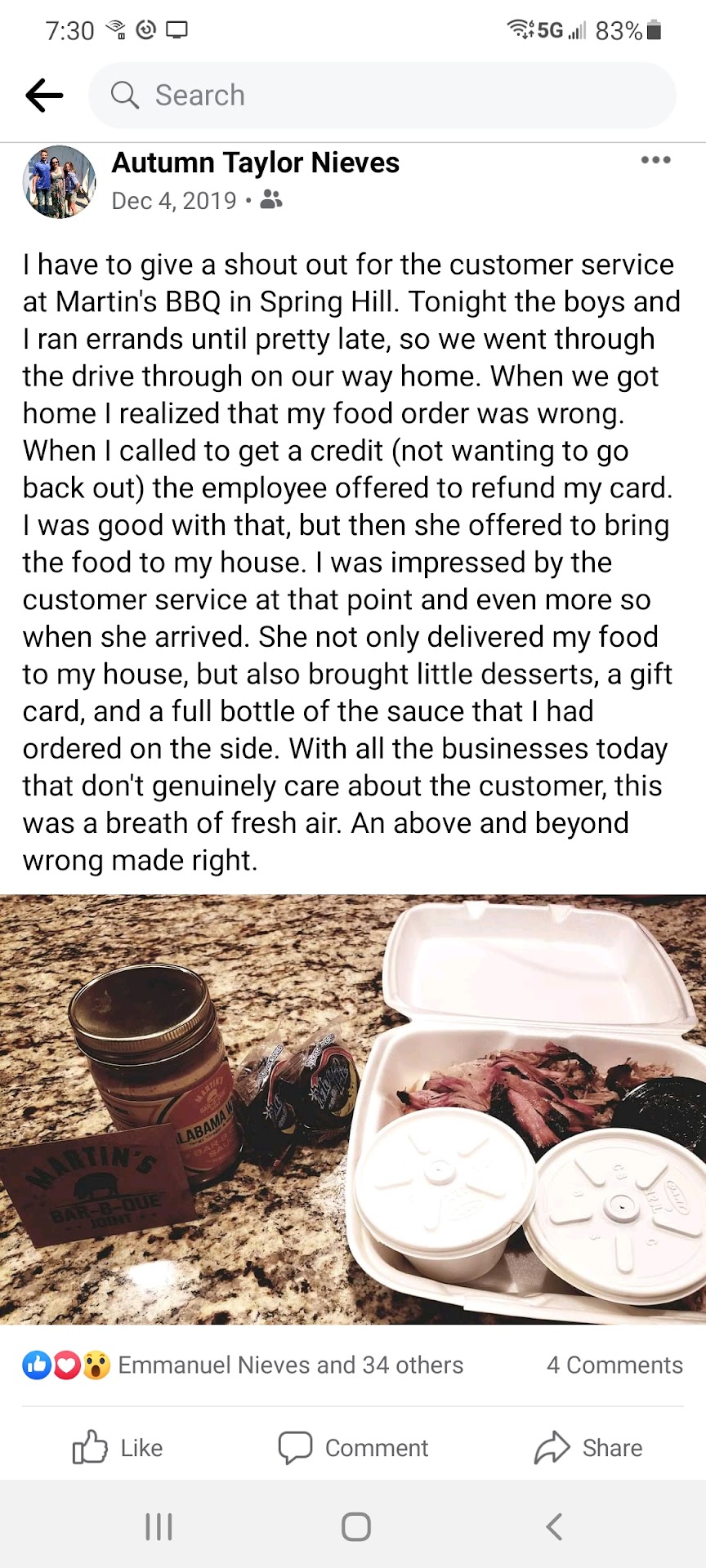 Read moreWe have bought the 2 or 3 lb meals several times. We bought 15lbs for a baby shower just a year ago. I went in tonight to place a order for our daughters first birthday and pick up dinner for the family. The dining room is still closed so I called to let them know I was outside. I went in spoke with the manager and asked I have 40-50 people coming how much bbq does she think I need. She had attitude from this point telling me it doesn’t matter that until I tell her what I want. So I politely tell her pork, buns and baked beans and Mac and cheese and bbq sauce. Basically a tray of each. My wife thought we needed 10lbs I was thinking closer to 12-15 as I smoke quite often. Your average foil trays are roughly 10qts. So before she tells me what she thinks she rings up a total. Basically $450 dollars. I then ask her how much of each. I’m reading the price on the wall 5lbs of bbq, buns and 4qts of sides for $100. I ask her do I need this much how much bbq is this for. She tells me 16lbs. I still don’t know how many are the trays were but I can buy 3 of their packs for $300. Which is what I was expecting to pay. I was in shock. Her attitude is miserable at this point and she tells me “I’ve only been doing this for 15 years and your questioning me.” No ma’am I’m questioning what I am getting for $450 that you are still refusing to tell me. At this point I just told her I would buy from somewhere else. The attitude this lady had with someone walking in willing to spend $300-400 dollars on tonight’s dinner and food for a party next weekend that I was picking up was just absurd. I apologize I asked to come inside and see your dirty laundry all over the tables. But I wasn’t going to trust a 16 year old kid in the drive through on a purchase this large and I wanted your professional opinion but instead I was basically told to pay this and go on. We will never return because of this attitude which my wife is upset with because it was her favorite local bbq. I hope whoever reads this saves themself the trouble and goes somewhere else. The math just...