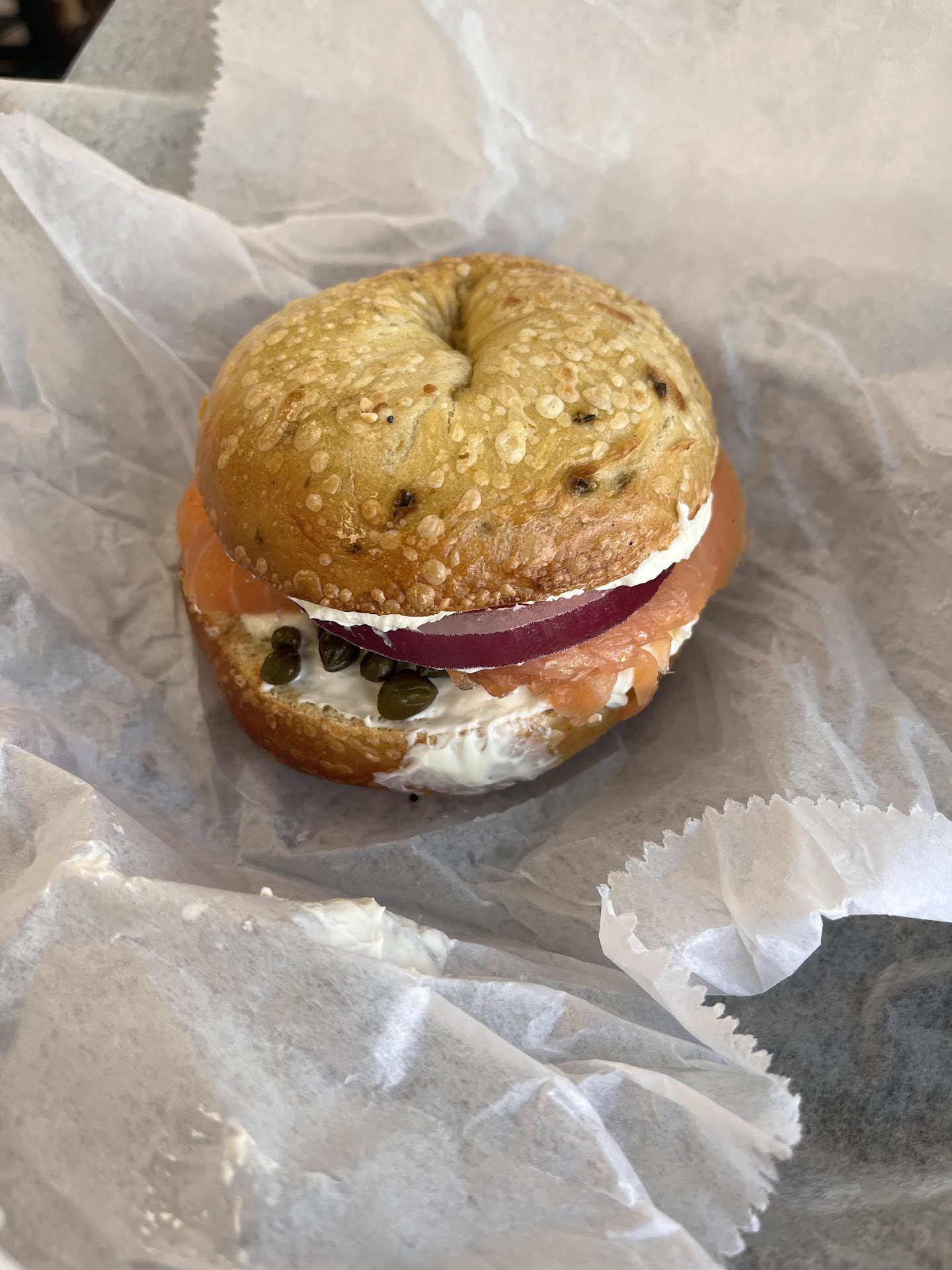 The food: it’s priced great. It taste… good. It’s a bagel for crying out loud, not a Michelin star meal! Diverse menu options with how many bagels you can get. I went with a classic Lake Murray: Locks, Capers, and Cream Cheese and onions. It ain’t my NJ girlfriends mothers, but it will DO.