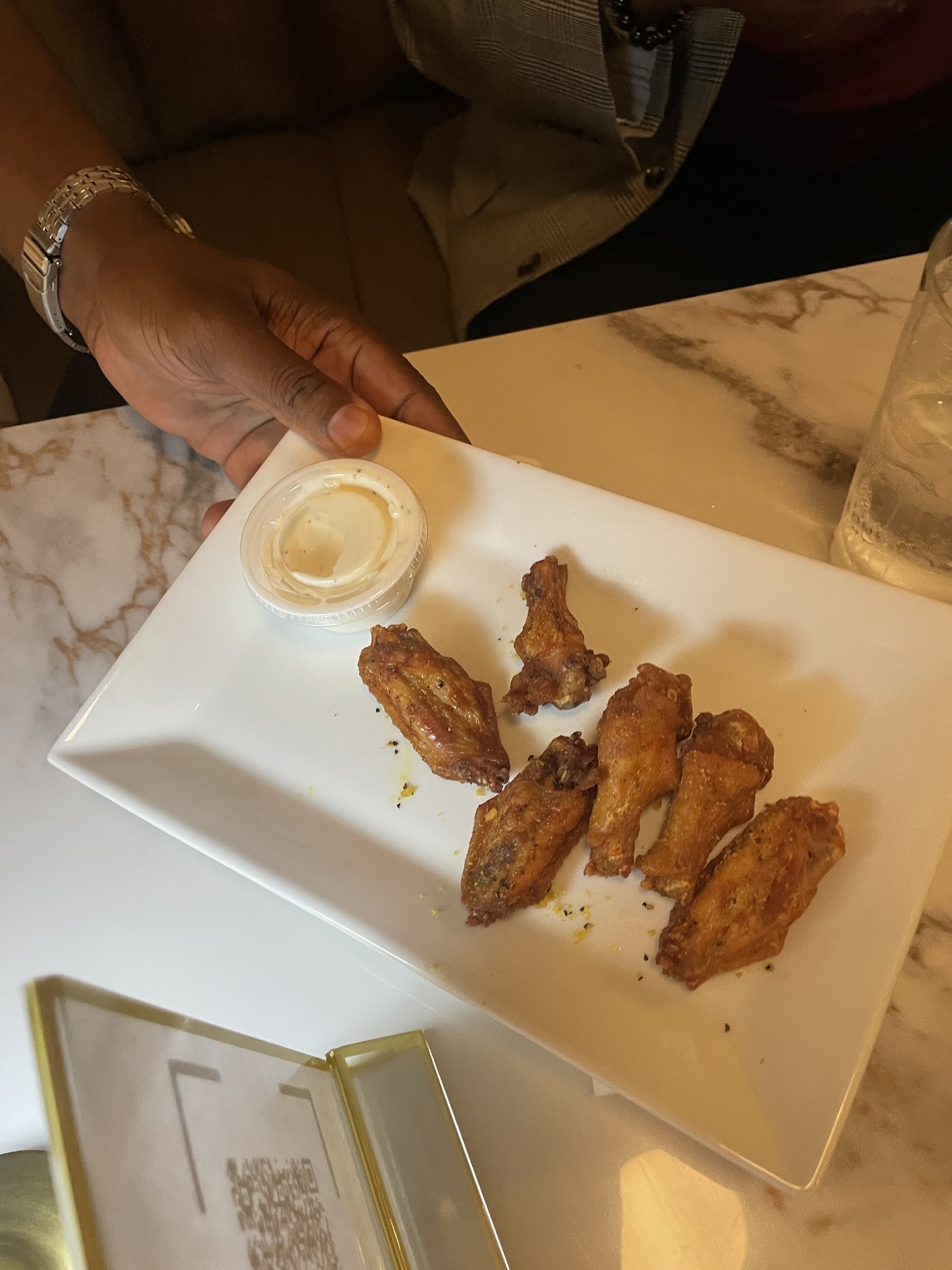 Iâm honestly not sure where to start with the food. We ordered our oysters for our appetizers, waited for about 20 minutes and then 3 entrees came out before our appetizers. My mom ordered a plate of wings and they were so small literally the size of my pinky. The flavor was good but not even filling enough for one person with how small they were. Our oysters came out but then not shortly after our entrees came so we didnât really have time to enjoy them. I ordered the ribeye, cooked medium and everything was cold. Everything. Was. Cold. My steak was well done even though I ordered medium, the asparagus was not cut and hard, and the macaroni was flavorless. The salmon was okay but also cold, the marry me chicken was okay, the lamb chops were good.