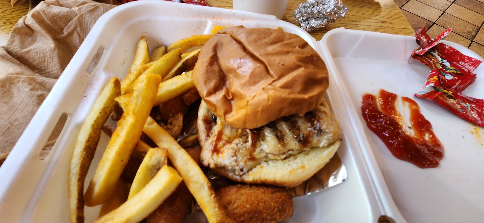 Read moreI normally dislike fast food. For what a nutritive disaster costs at most fast food chains, I can dine on a reasonably healthful meal elsewhere. However, while I'd hardly put it in the "health food" category, Cook Out at least seems to try to use fresher ingredients than most fast food chains, and given the prices, you won't have dual dietary and financial guilt afterward. This store is at or above average compared to other Cook Out stores. Their burgers are good, their shakes excellent, and they have a large variety of other selections, at astounding prices. (It has been interesting to see long-established chains trying to respond to this challenge.) If you are a first time visitor to a Cook Out, don't get lost in the huge menu. Look at the separate "Cook Out Tray" section. Here, you can pick one entree, two sides (most of which would qualify as an entree elsewhere), and a generous drink, which includes choices like a giant tea or float for no extra cost. At around $5, this is a great value. Obviously, I'm enthusiastic about this new-ish chain. So why not five stars? Some sides (like onion rings) are skimpy portions. Order accuracy has been an issue at times, though this store seems to be getting better. The menu would benefit from the veggies one might find at a real home cookout like green beans, squash casserole, gumbo or fried okra, etc. With just a few tweaks, they could dominate the...