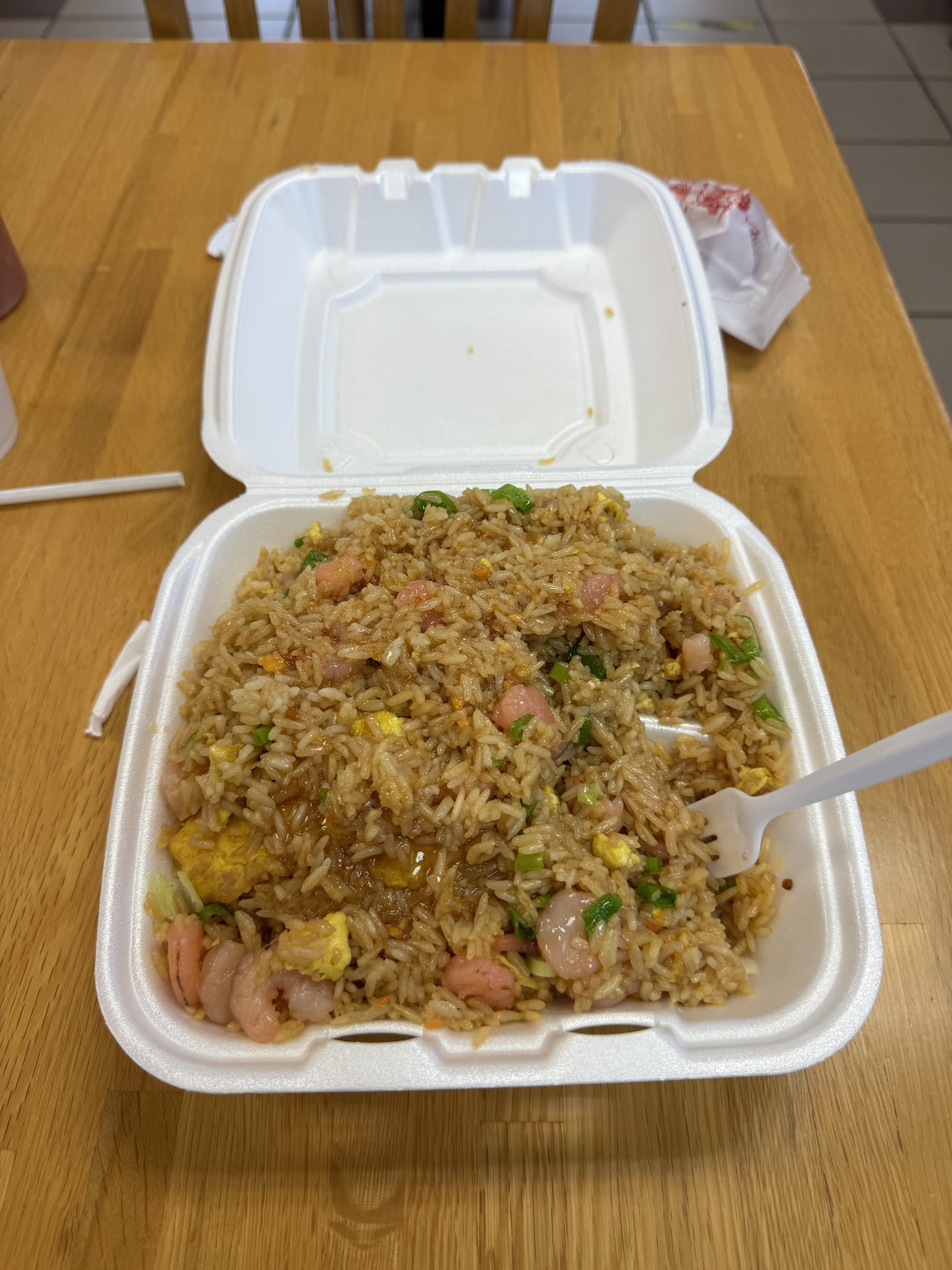Read moreWe were visiting from out of state and saw the great reviews this place had and so wanted to give it a shot. Ordered some pretty standard fare that are our family's go-to items: lemon chicken, general chicken, chicken chow mein, and pork fried rice. I honestly had to walk back up to the counter to have the clerk explain what was what because none of it looked like what we thought we ordered. The chow mein had no noodles and was very... white for lack of a better explanation. This was on us as the posted menu didnt explain that here, chow mein has no noodles, whereas at home when you order chow mein you get noodles in it. I guessed right on which was the general chicken, but the other two boxes each had fried meat bits in there with no sauce to differentiate which was which. Come to find out, the young clerk mistakenly sent back an order for sweet and sour pork instead of rice. So one box was pork and then other chicken but how to tell which? Apparently here, sauces come separate and you put them on yourself.... so we got the rice situation straightened out, finally got our drink cups since the clerk misunderstood that we wanted sodas from the fountain, not the bottled ones. Finally sitting to eat, the chow mein was bland, the general chicken tasted like it had sweet and sour sauce from a grocery store brand on it, and I couldn't even bring myself to try the others. No one in the family of six went back in for seconds and we took none of this home.