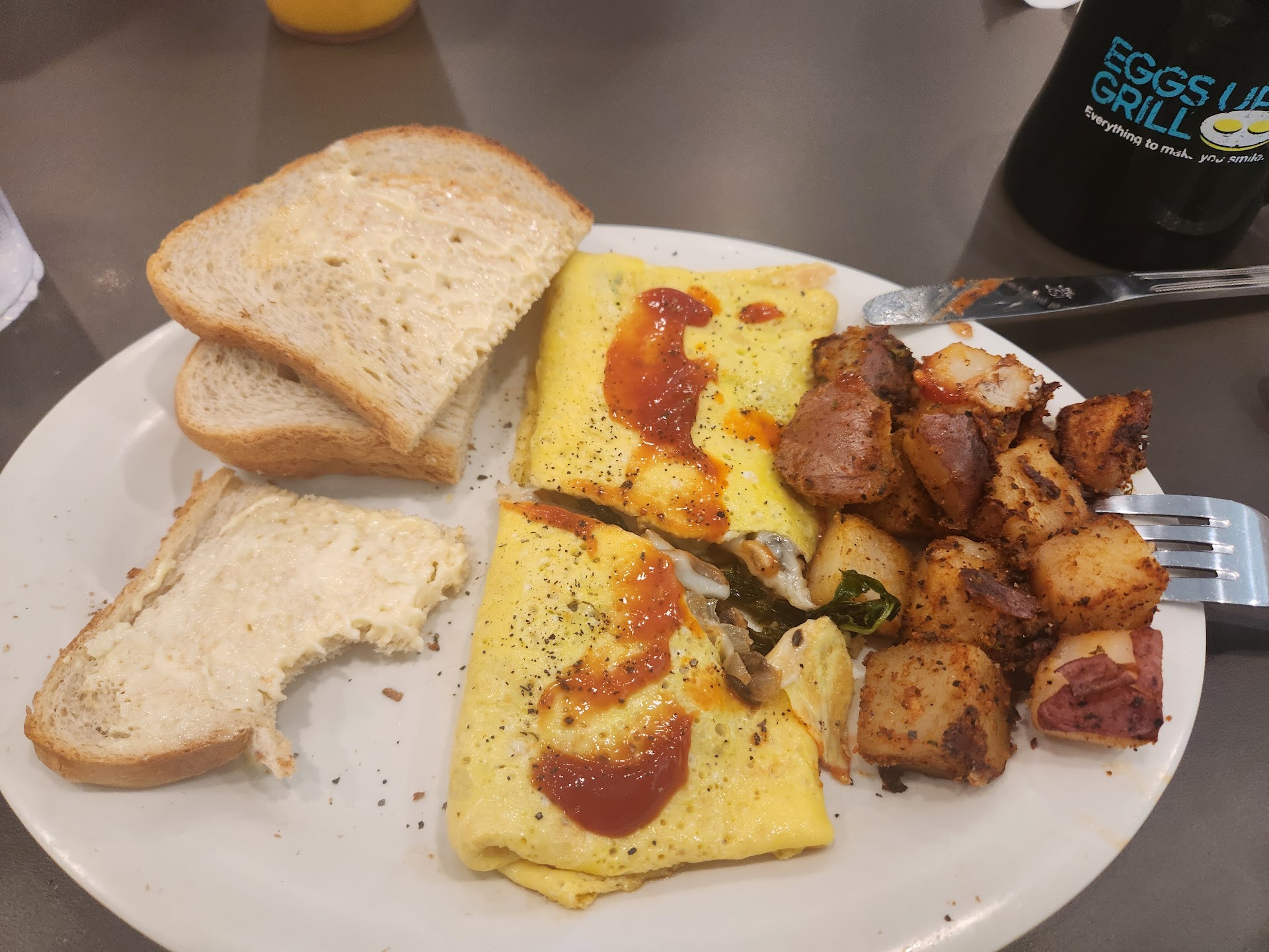Let me start off by saying I had the worst experience at the Egg up grill. Secondly managment need to take an look at how their server's view customers. Me and my wife walked in thinking this was going to be an great place for the both of us after being so busy after valentine day . We run an business that was super busy the day before. Our service for when we first walked in was great and welcoming. Then our sever was not as welcoming as the host. I got an oj and wife got an tea. My cup was dirt so I asked her if she could get me another oj but in an Togo cup.she took my oj an just poured the oj from the dirty cup and put it in the togo cup. How I know she did this is there was piece of black stuff floating around in the old cup,with oj all on the side of the cup without wiping the cup before bring it back out to me. Her attitude was very nasty towards us as if we where a bother to her. My wife got grits with cheese no cheese, Food was cold. Never got to tell her nothing because she keep walking away so fast. Understand this I was an sever 5 years and I could never serve anyone the way I was served today. Being judged by my appearance is not right. Yes I was so tired so we just put on sweats. And being that we own our own business, we both had not had the time to get our locs retwist. I can always tell we I'm being judged and this was an moment were we was being judged. She didnt want to come check on us, didn't offer refills,didn't come back to see if our food was good. Seen this women 3 times our whole visit. Both me and my wife told each other that we was going to bless whoever severed us today since we did so great for valentine. Had our 100 dollar tip ready, but how we was treated by this women, I did not want to give my hard earned money to her. End up going to get gas down the street and the man behind the counter was so kind,and welcoming I just paid with the same 100 dollars and told him to keep the change. Moral to the store is dont cast judgment on people so fast. You never know who was sent to bless...