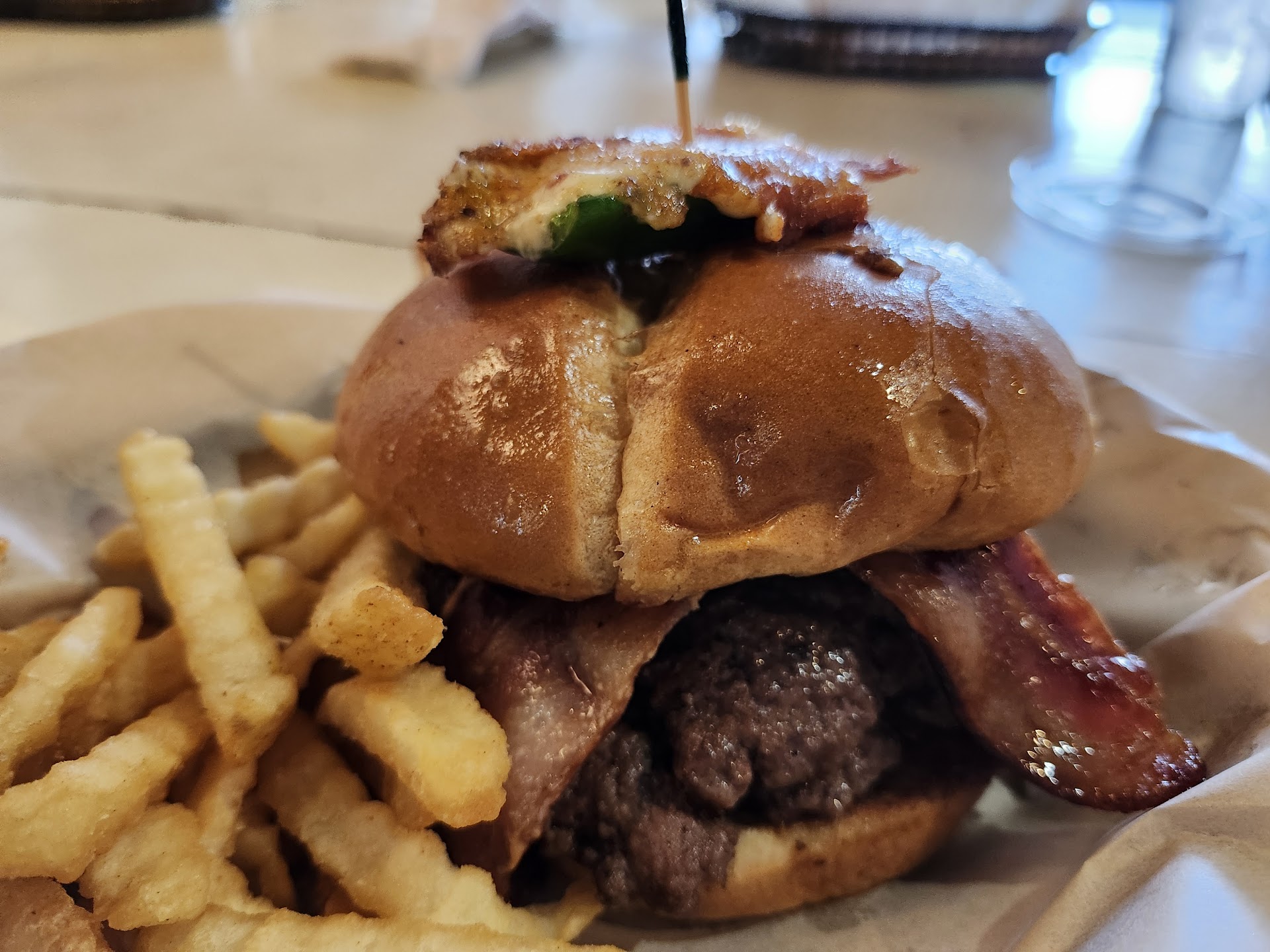 Read moreFantastic new burger place in downtown Columbia! Came with three others at lunchtime for some burgers. We all got the pepper popper, and we all found it to be very tasty! There was a bit of heat maybe on par with a medium nashville or buffalo heat level. The bacon jam paired with the cream cheese and bit of heat is a delightful experience for your taste buds! Highly highly recommend this burger, will definitely be trying the devil goes down to Georgia next time I visit!