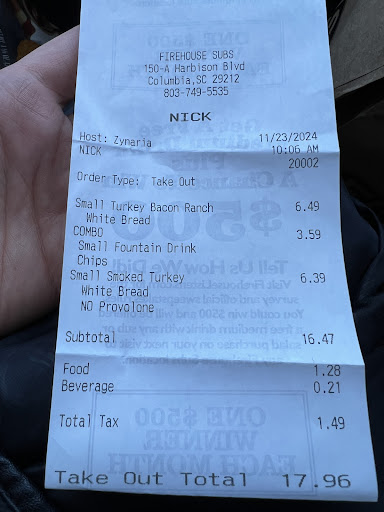 Read morecame in at 8:06 to order a large steamer on wheat.$10.46..just as Ive done for many years. Ive never had to check my order EVER!. the cashier was sweet as usual ...she read my order back as usual. long story short ..We get on interstate 26 heading to Charleston for my husbands bday surprise celebration and the sandwich is completely wrong! WHITE BREAD!! SLOPPY!!!! we don't do white bread for one 2nd the sandwich is sloppy soaked in Mayo 3rd there isn't even a pickle in the container. at first I wanted to turn around & request my money back!!! but we were on a time schedule & already in route. Im so pissed that look for the receipt & I call and find out that its the MGR THAT MADE THE SANDWICH & HE HAD THE NERVE TO TELL ME BRING IT BACK IN WHEN WE RETURN. ..YEAH SURE KEEP IT IN MY BENZ C450.... CUSTOMER SERVICE JUST ISNT THE SAME ANY MORE. I WILL BE REACHING OUT TO CORP..ABOUT MR TRIP. HE SHOULDNT BE A MGR. This dude has the nerve to sound as though it wasn't a big deal !!!!! I tell him that the sandwich is on white instead of wheat!!! The sub didn't even have a PICKLE! WE'RE NOT EATING THIS SLOP!!!IVE NEVER SEEN A SANDWICH MADE THE SLOPPY...