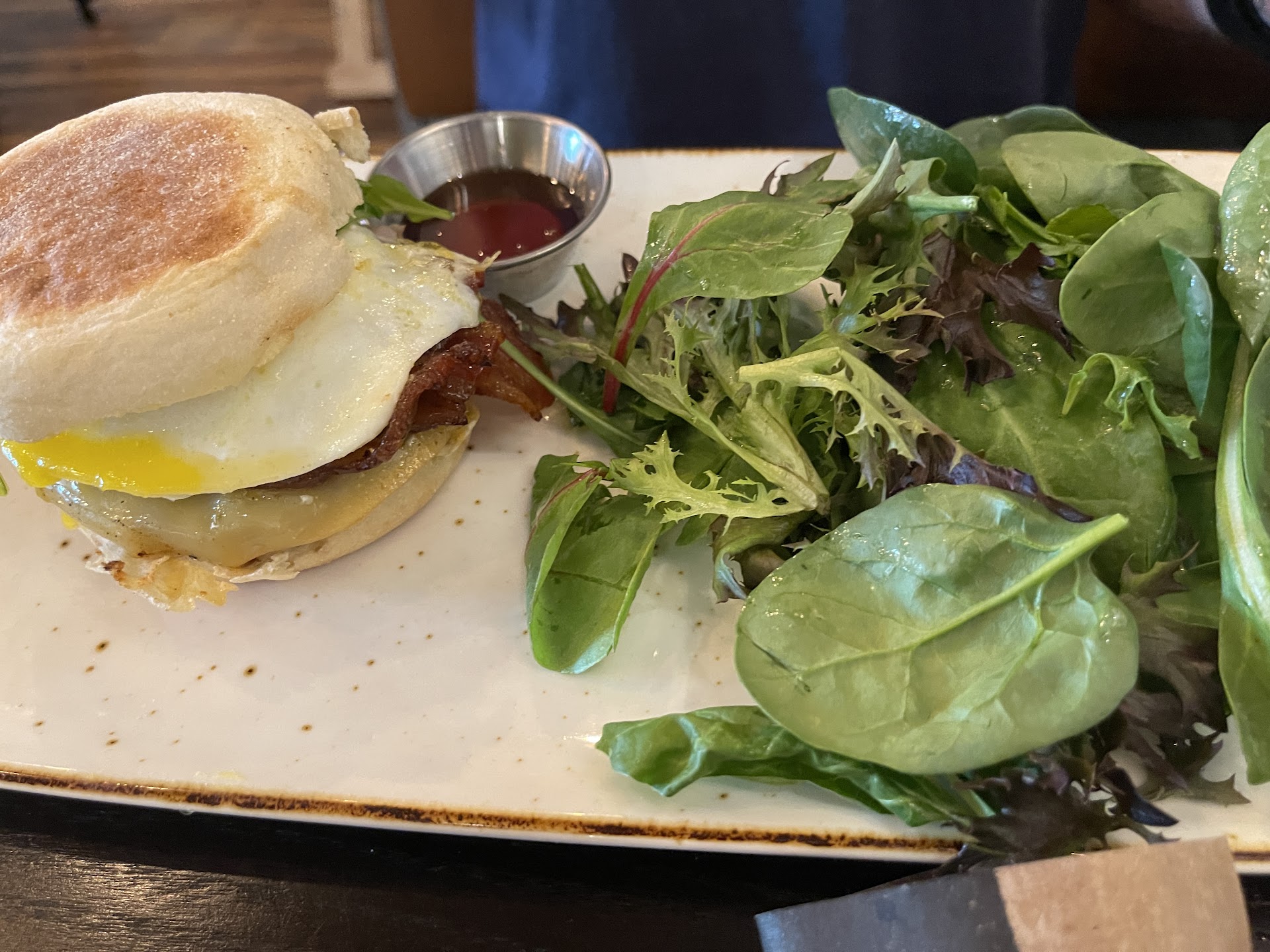 Read moreReally wanted to like this place- the menu is so promising and a great breakfast place is needed in this area. It is cute. Service started off great but then almost non-existent- had to flag our server down for missing items, didn't receive requested drink refill, had to flag down server for our check. The chickichanga was very good as was the million dollar bacon (although the million dollar bacon was not on the menu?). The ham and gruyere omelet was fine, nothing special- although came with salad greens not the potatoes ordered as a side. Took a very long time to get the potatoes- both those and the chickichanga potatoes (brought out at two very different times) were meh- not much flavor, entirely underdone/hard. The salad greens tasted like nothing- just olive oil. The lemon ricotta pancakes also did not come out with the food, took a while- and then were just awful. Very dry, no real taste except the lemon curd, overdone. Worst pancakes I have had possibly ever. Checking out there were 3 people joking with one person paying, I had to to ask for someone to check me out. I didn't say anything to my server about our disappointment because they pretty much disappeared after taking our order and I was having a hard enough time asking for missing items and waiting for the check, and then I couldn't get the attention of the cashier to even cash me out even though I was standing right there in front of them. I understand that this place is newly opened, and was giving them the benefit of the doubt and provided my feedback to the corporate website and not here- but that was almost 60 hours ago and didn't hear back. Sadly, can't recommend.We came in early on a weekday- when we arrived were almost the only ones there and when we left it wasn't that crowded at all, so my experiences are not due to it...